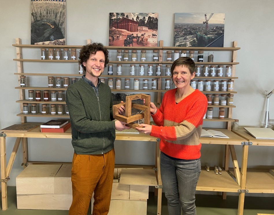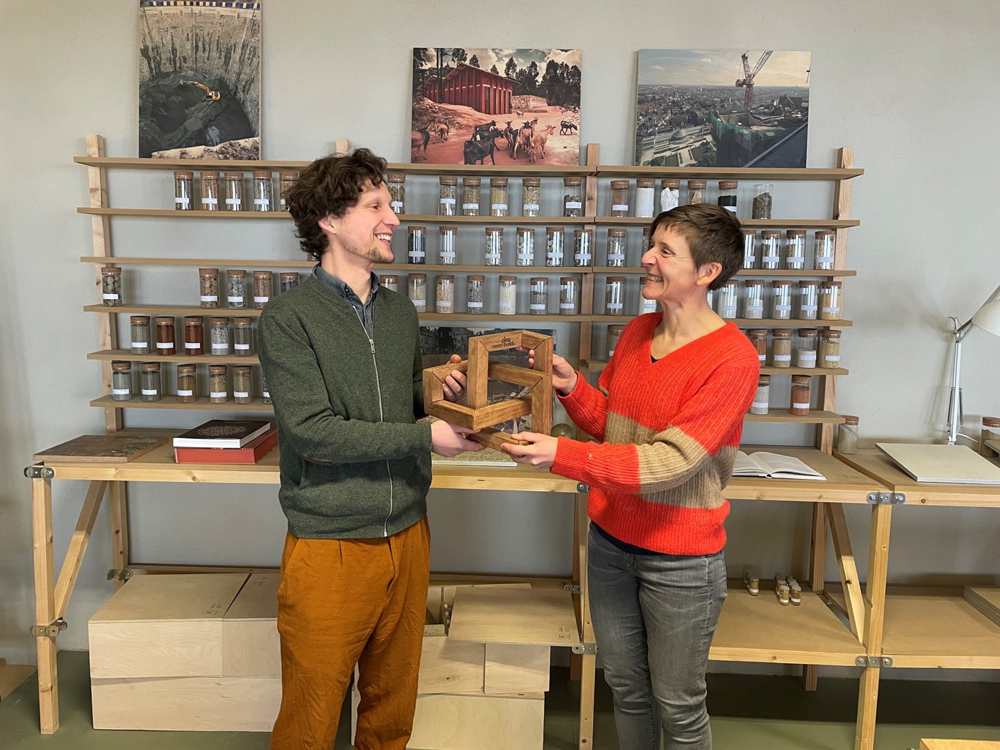 Ken De Cooman liet zich de mooie woorden welgevallen. "Het is tof om de prijs te ontvangen van iemand die voor de Vlaamse overheid werkt. En Almut had niet beter kunnen omschrijven waar BC materials voor staat. Wij zijn een klein bedrijf, maar onze impact ligt inderdaad niet enkel in het aantal ton grond dat wij verzetten. Wij zijn niet puur een productiebedrijf, maar willen architecten, bouwheren én overheden ook tonen dat bouwen met leemproducten kan en hen zo inspireren. Het is mooi dat we dan net van een overheid de prijs krijgen."