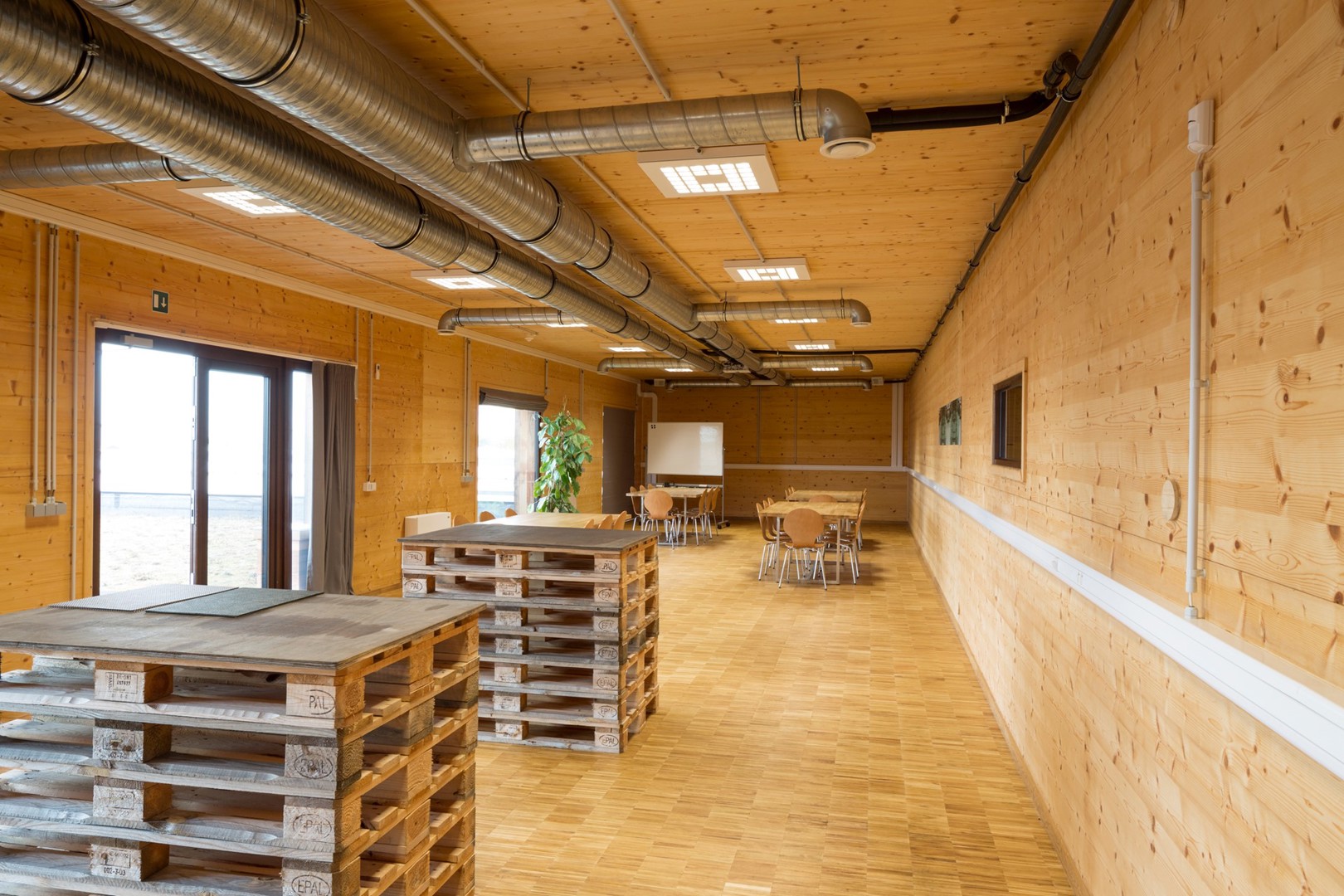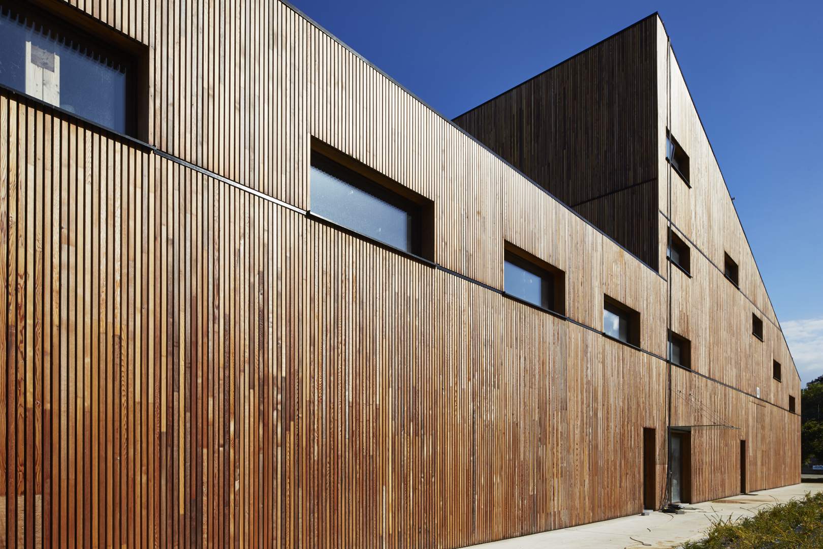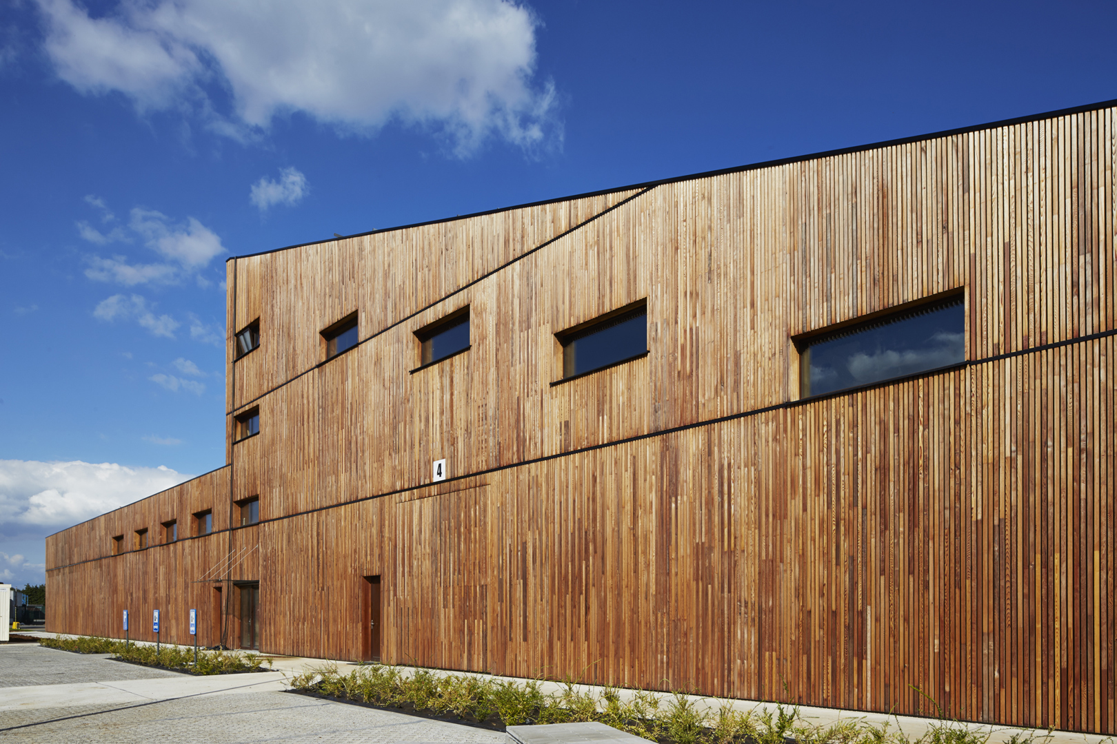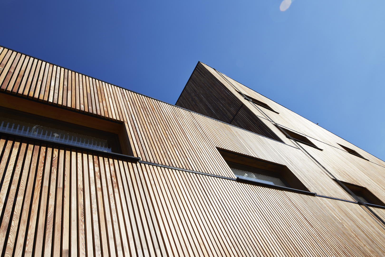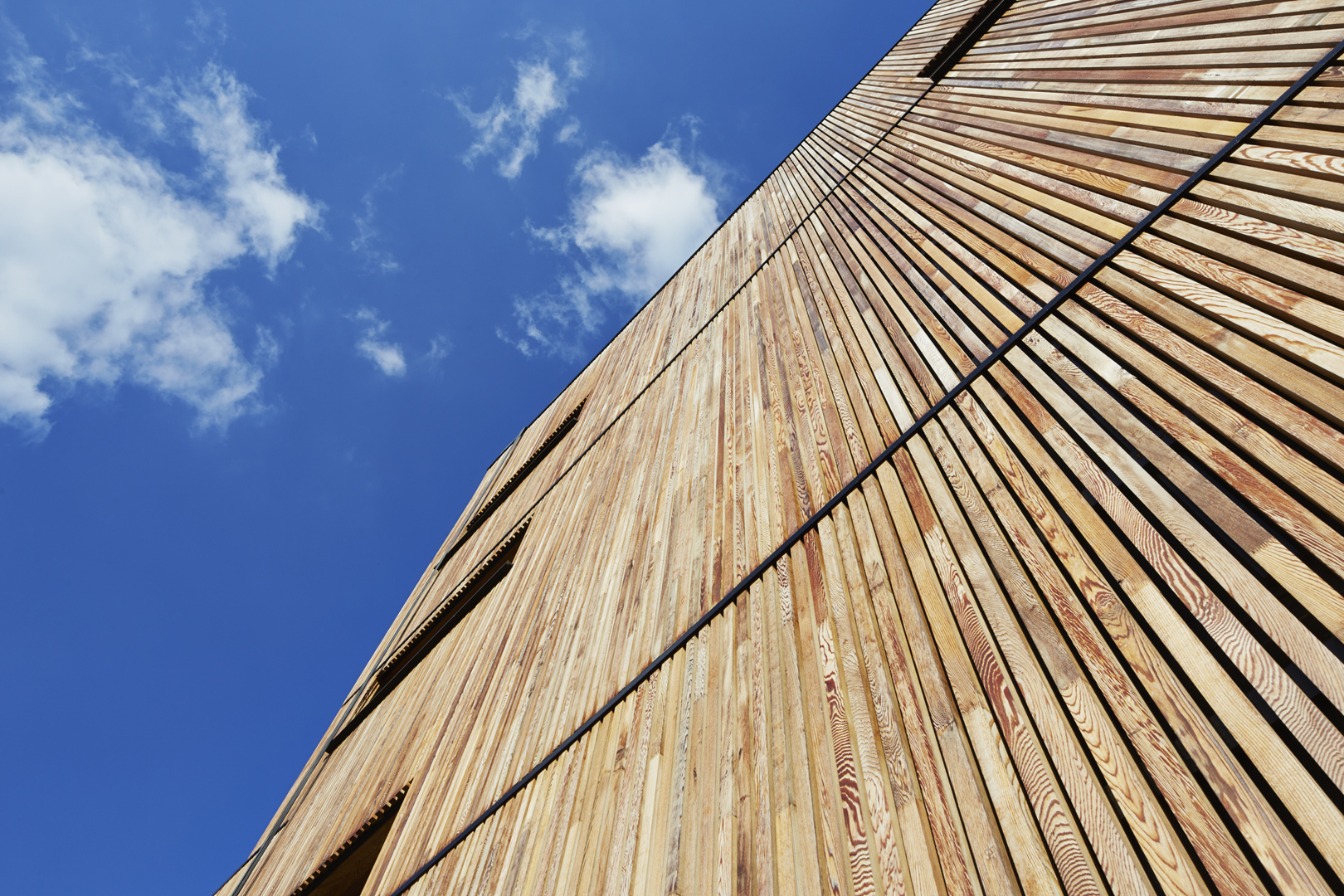 YUGENING (voordien OVG Architecten, red.), met Koen Van Grimbergen als projectarchitect, werd onder de arm genomen en besloot Vandersypen op zijn wenken te bedienen met een doorgedreven circulair gebouw. Zo bestaat het hele gebouw uit een volhouten, demonteerbare constructie. Daarbij werd het onderste uit de kan gehaald, getuige daarvan het feit dat zelfs de liftconstructie in larikshout werd uitgevoerd.