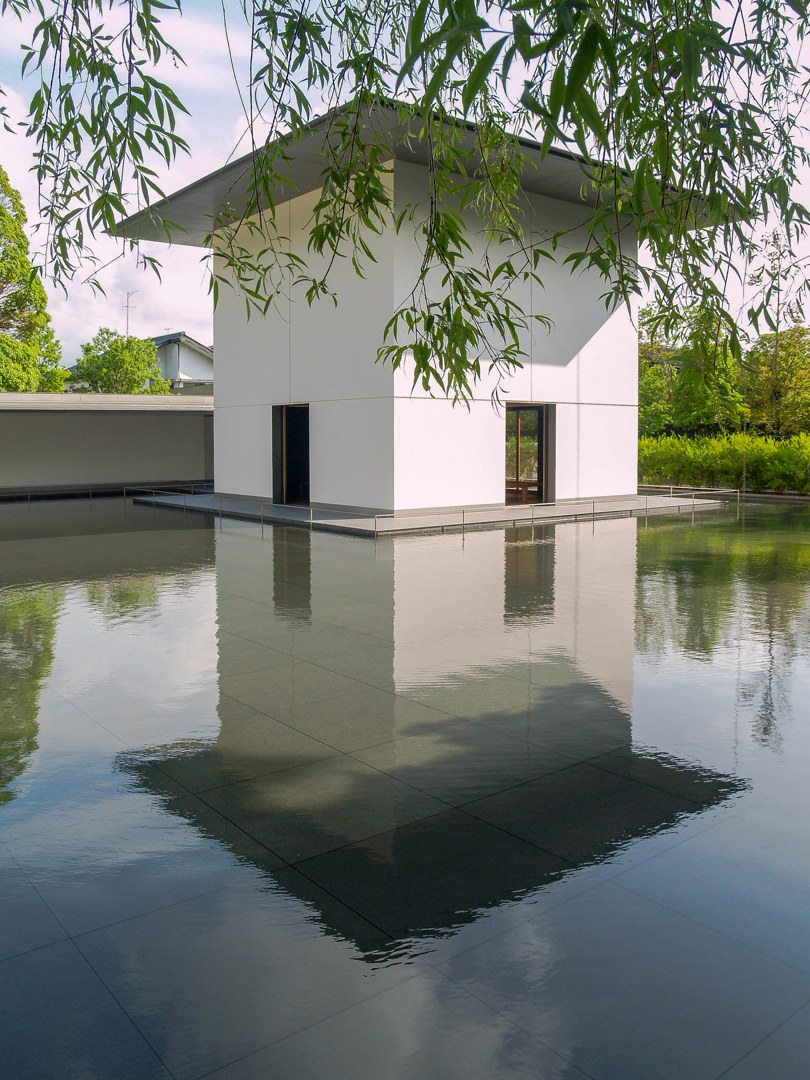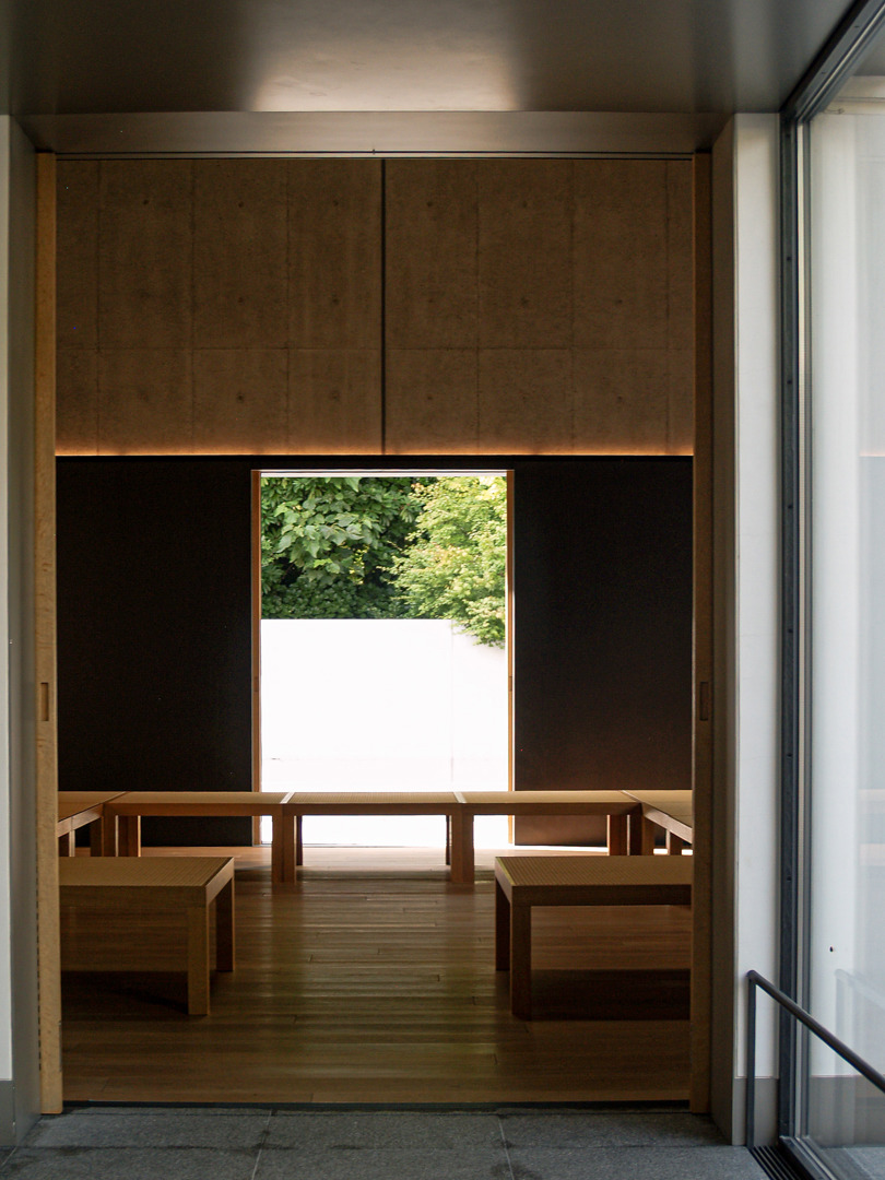 Taniguchi Yoshio, welbekend van de uitbreiding van MoMA in New York (2004), zet hier in op de relatie architectuur-natuur. Typisch Japans tasten mon (portals) en hei (muren) en ook nokishita (een uitkragend dak) en engawa (een portiek tussen buiten en binnen) de banden tussen interieur en exterieur af. Ze weerspiegelen de principes van het boeddhisme.