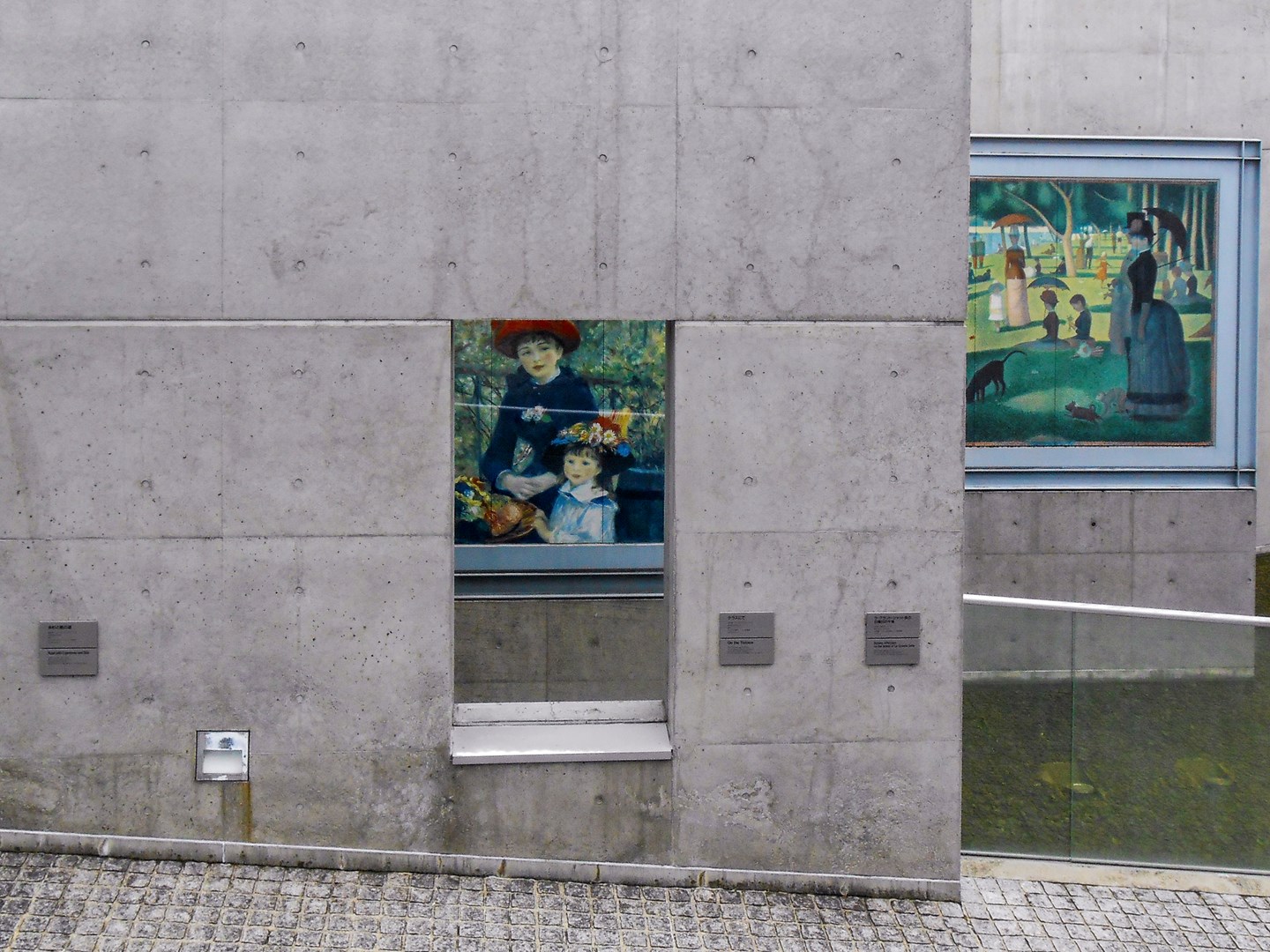Maar het indrukwekkend water en de tegenstelling tussen de romantische Europese kunst en de coole Japanse betonstructuur lokken.