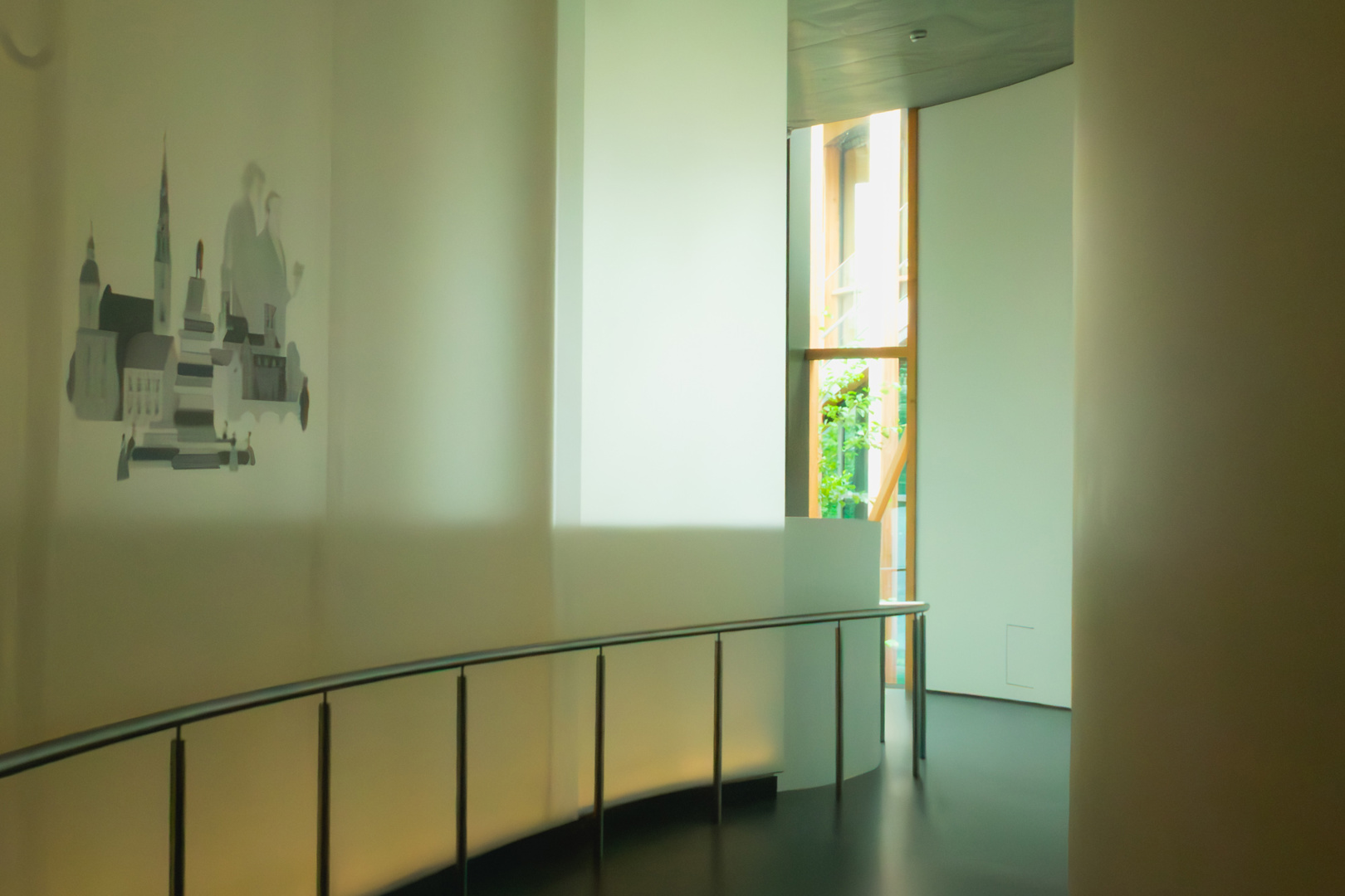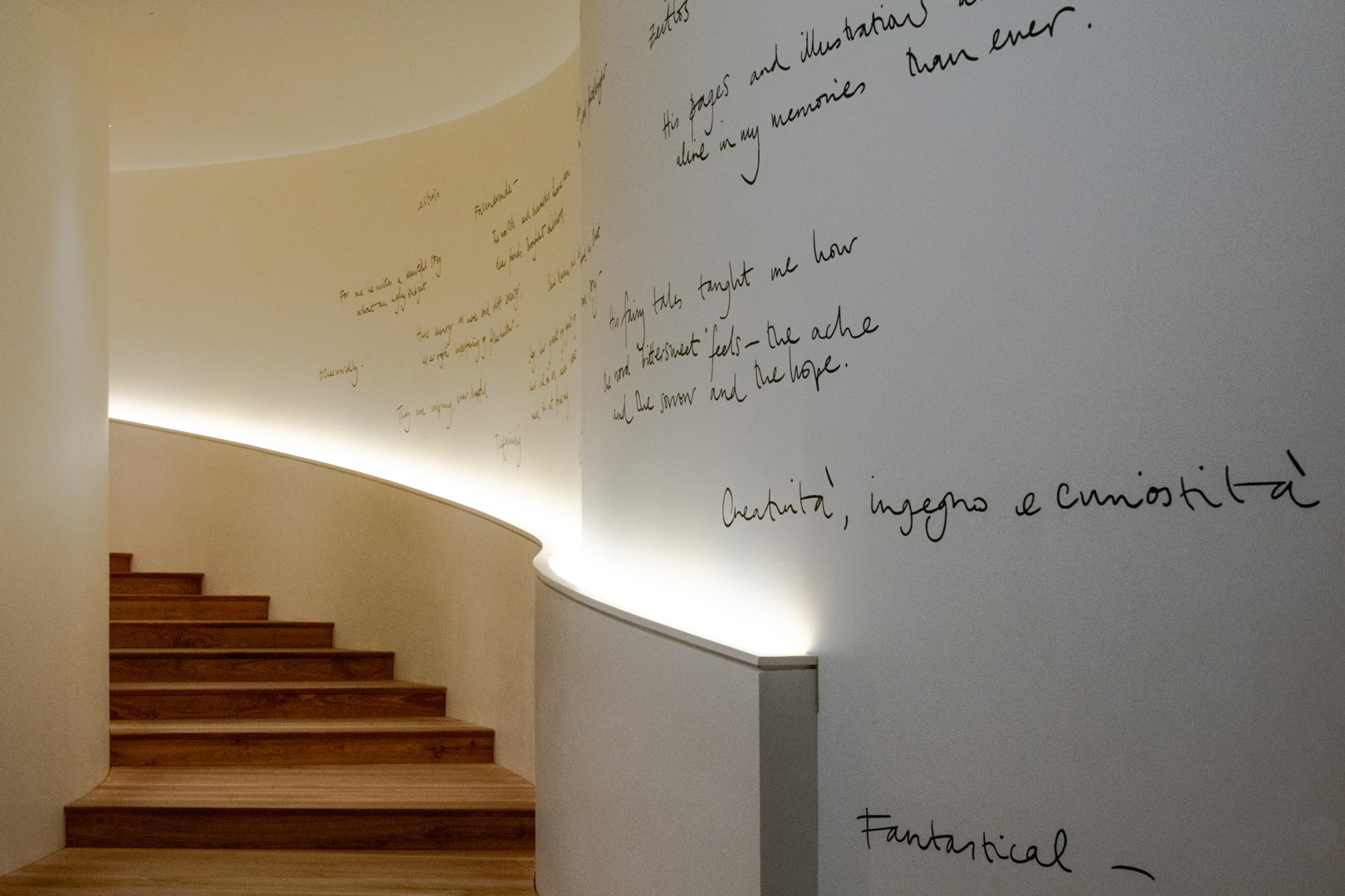 We geloven in zijn sprookjes. We geloven in deze architectuur die ons wisselend van duisternis naar licht, van binnen naar buiten, van tuin naar stad leidt… Lopen in het echte leven realiteit en fictie ook niet altijd in elkaar over?