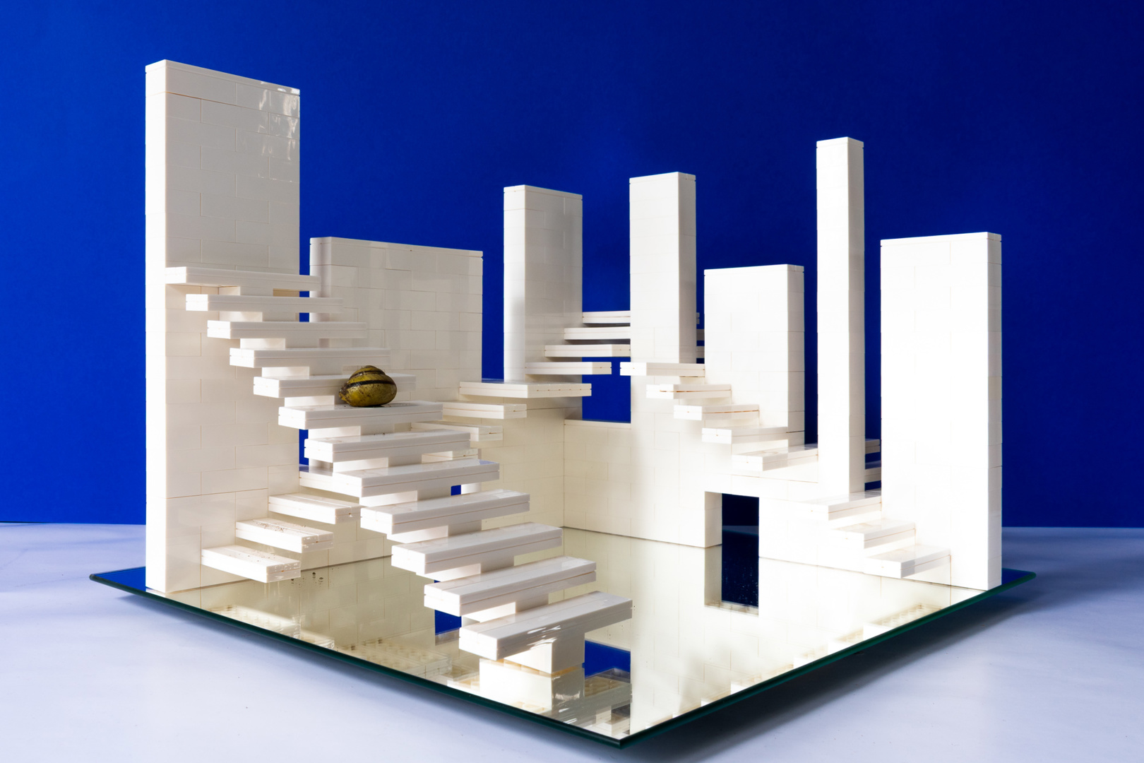 Mijn LEGO-installaties staan soms op een spiegel waardoor ze extra ruimte krijgen. Soms staan ze voor een gekleurde, zwarte of witte achtergrond waardoor ze contrasteren, vervagen…