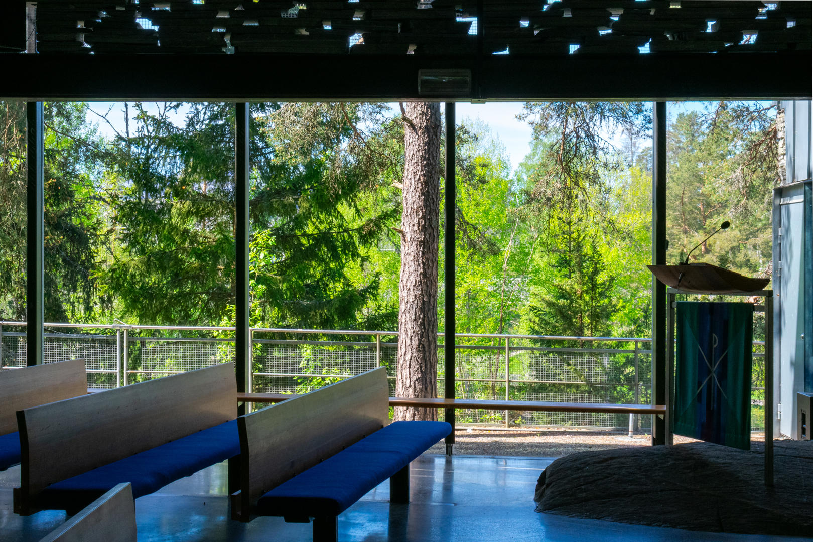 Staat Pinksteren voor de kracht en de inspiratie van de Geest, dan staat de Mortensrud Kirke voor én de kracht én de inspiratie én de spontaneïteit van de natuur in de architectuur.