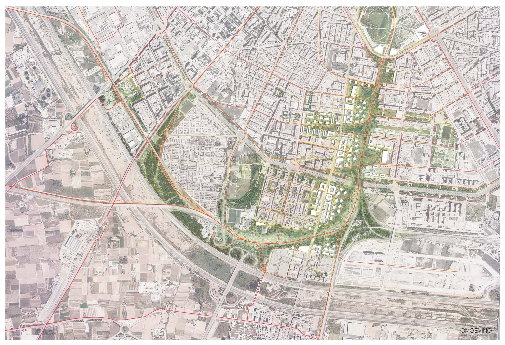 Het Belgische ontwerpbureau OMGEVING landscape . urbanism heeft de ontwerpwedstrijd gewonnen voor een vier kilometer lang landschapspark met drie ecowijken in de Spaanse stad Valencia. Het landschapspark zal anderhalve kilometer treinsporen overkappen en de snelweginfrastructuur geleidelijk uitfaseren. De nieuwe ecowijken die worden aangelegd, zullen plaats bieden aan vijfduizend inwoners. Valencia, de European Green Capital 2024, staat hiermee aan de vooravond van het grootste stadsontwikkelingsproject in 40 jaar, sinds de rivier Turia werd omgevormd tot een park. Het is de eerste keer dat een Belgisch ontwerpbureau een opdracht van deze schaal binnenhaalt in Spanje.