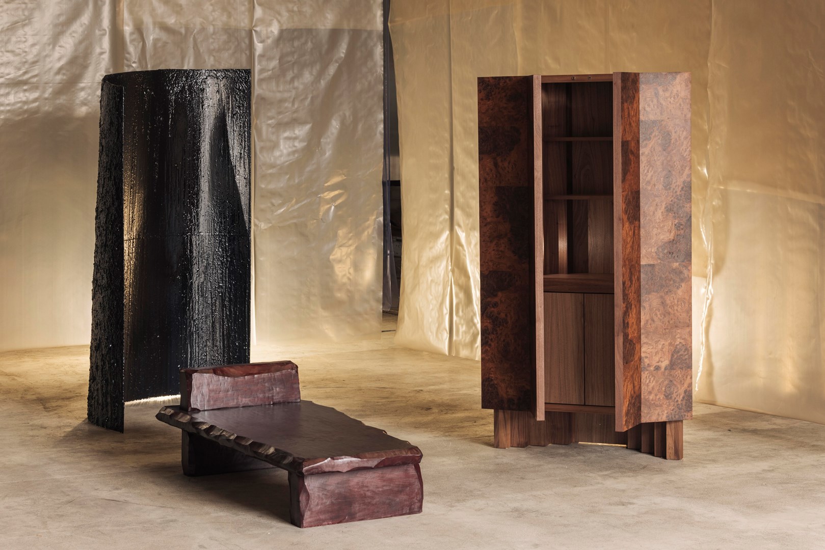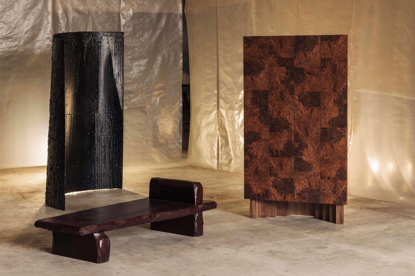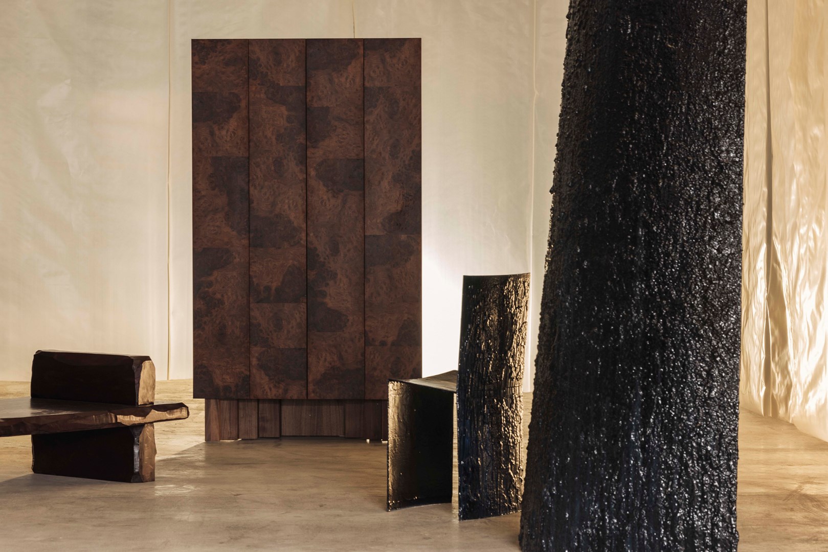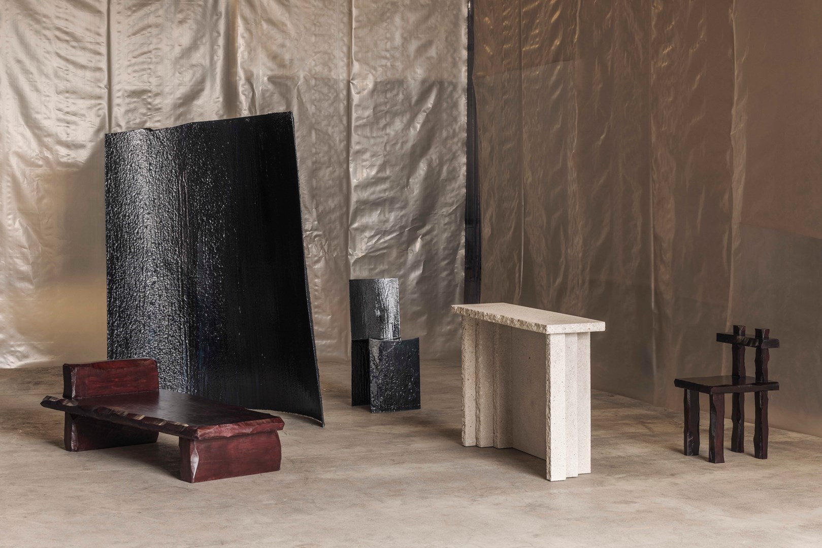 Textuur is een belangrijk element in het werk van alle drie de ontwerpers. Hoewel hun materiaalkeuzes variëren, is er een duidelijke resonantie en harmonie in de manier waarop ze oppervlakken vormgeven en definiëren. De puurheid van hun uit één materiaal bestaande composities creëert een gevoel van kracht en laat een blijvende impact achter. Hun benaderingen van textuur zijn verschillend, maar het contrast in materialen voegt diepte toe aan hun gedeelde affiniteit voor vakmanschap.