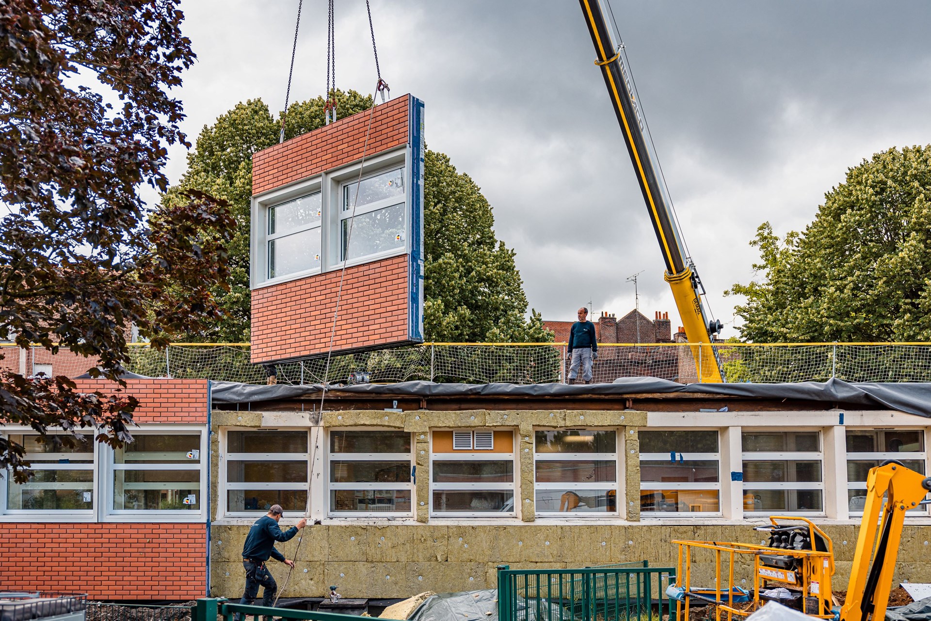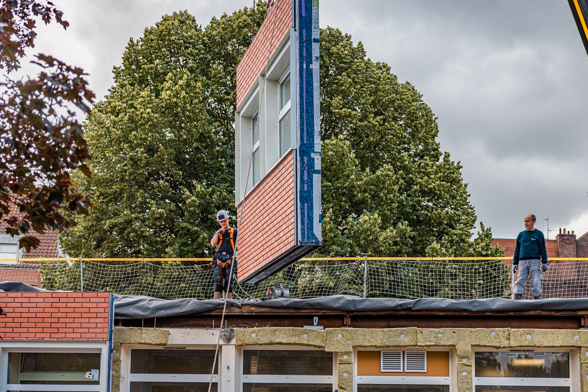 Tijdens de korte tijdspanne van de zomervakantie kregen de gebouwen zo een klimaatjas en werden via offsite bouwen volledige nieuwe gevels en daken geplaatst. Net als een belangrijk deel van het Europese woningbestand, zijn ook veel schoolgebouwen in slechte staat en niet aangepast aan de huidige en toekomstige energievereisten. België kampt met een gelijkaardige problematiek. Het is dus een hele uitdaging om dit verouderde patrimonium te matchen met de klimaatdoelstellingen van 2050.