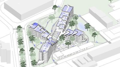 De studentengroepen ontwierpen een volledige academische site in de Poolse hoofdstad Warschau. Het ontwerp voor de studentenhuisvesting van het winnend team bevat twee aparte bouwvolumes, die in het verlengde van elkaar geplaatst werden om één diagonale lijn en vier buitenruimtes te creëren. De niveaus werden verhoogd zodat er een trapachtig dak ontstaat met verschillende terrassen. Door de 2 bouwvolumes te verbinden met een platform, kunnen de bewoners zich van het ene gebouw naar het andere begeven. Daarnaast werden er op de begane grond meerdere doorgangen voorzien, zodat de verschillende buitenruimtes in verbinding komen te staan met elkaar. De gehele constructie komt samen in een centrale ontmoetingsplaats.