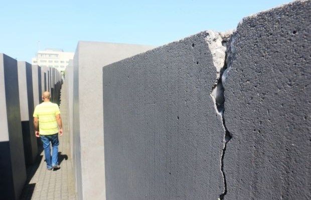 Het Berlijnse Holocaust-monument worstelt met betonproblemen. De eerste barsten werden al na een paar jaar vastgesteld. Intussen zijn zo’n 2200 van de 2711 betonnen stenen vermoedelijk beschadigd. Het monument, dat ruim 27 miljoen euro kostte, is nog maar 9 jaar oud. Het snelle verval van de herinneringsstenen of ‘stelae’ roept vragen op over wie verantwoordelijk is voor de kosten.