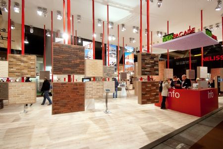 De achterwand van de stand van Nelissen die op Batibouw in de prijzen viel, werd ook met dit systeem gebouwd.