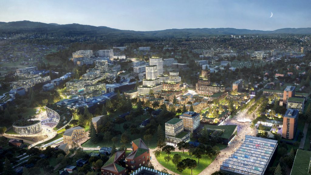Het gebied gelegen nabij het centrum van Oslo is vandaag de thuisbasis van zo’n 300 start-upbedrijven, 7.500 onderzoekers, 10.000 ziekenhuismedewerkers en 30.000 studenten. De jarenlange haalbaarheidsstudie om 1,4 miljoen vierkante meter toe te voegen aan dit gebied tegen 2045 is de eerste stap richting de creatie van een fysieke omkadering voor een innovatiedistrict in het land, dat een bevolkingsgroei van 22% tegen 2045 in deze stadsregio vooropstelt. Het innovatiedistrict - ontwikkeld door BIG, A-lab, mobiliteitsexpert CIVITAS, Comte Bureau en adviseurs Dr. Tim Moonen en Leo Grünfeld - heeft de doelstelling om uit te groeien tot een emissievrije zone gebaseerd op hernieuwbare energie, energie-efficiëntie, circulaire principes en energieneutrale oplossingen, en dat zowel tijdens de ontwikkeling als in de gebruiksfase. Het ontwerpteam wil het district met 1,4 miljoen vierkante meter uitbreiden niet alleen door gebouwen toe te voegen maar ook door middel van hergebruik en renovaties.