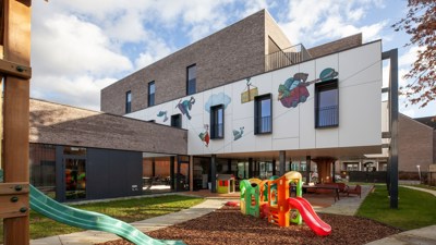 "We zijn gegaan voor een woongebouw waar kinderen blij van kunnen worden.”, gaat architect Hubert Bijnens van BPA Groep Architectuur van start. “Dus zijn we ver weggebleven van het ‘klassieke instituut’ en volop voor een warme beleving gegaan.”
