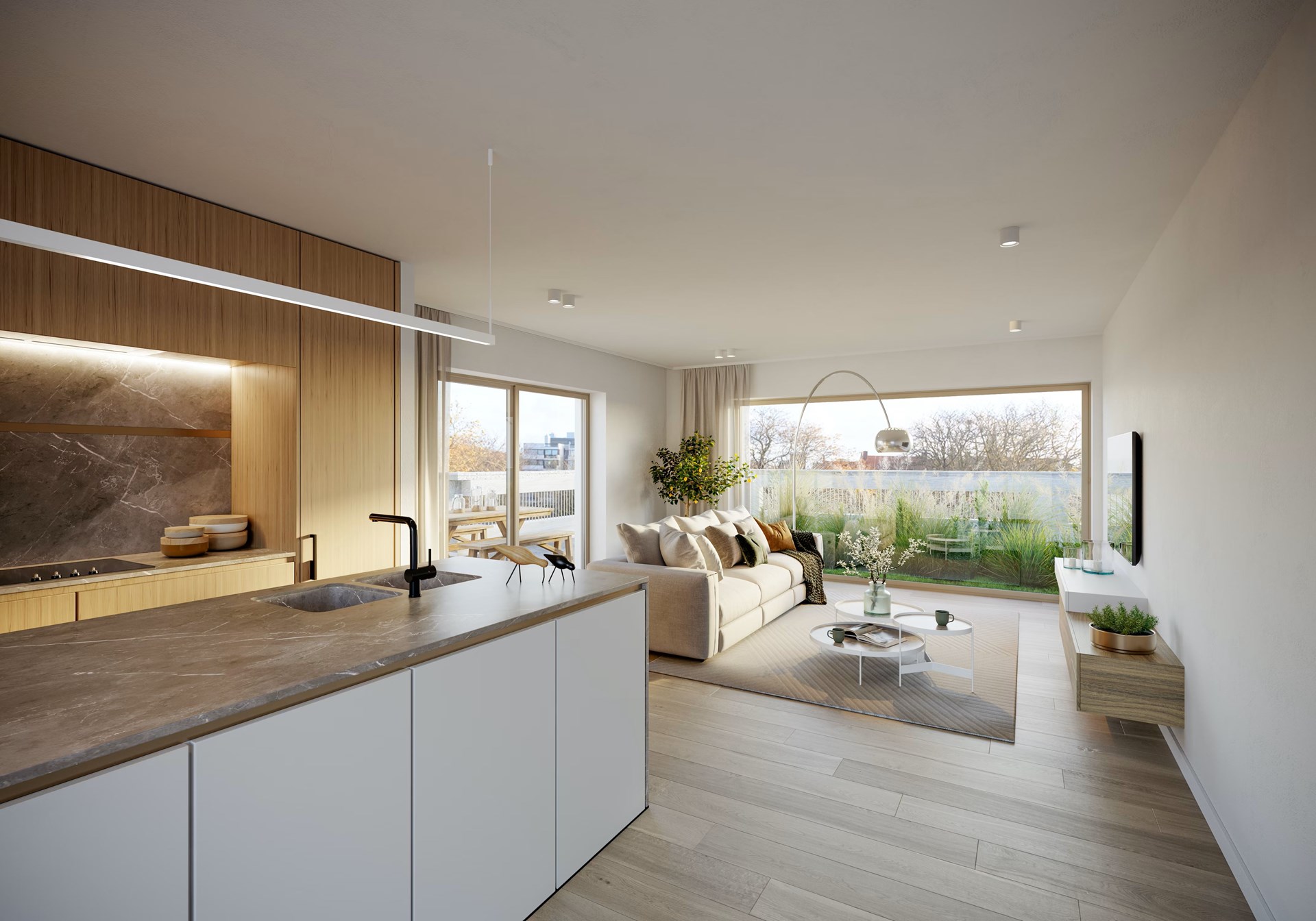 Op de terreinen van Van Marcke aan de Kolenkaai in Brugge is het startschot gegeven voor de bouw van wat het meest duurzame project van de stad moet worden. De vroegere site van de badkamer- en verwarmingsspecialist wordt getransformeerd in een groene binnentuin van 3.500 vierkante meter met rondom 111 woongelegenheden. Er komt een warmtenet dat alle woningen langs de Brugse binnenvaart zal verwarmen en passief koelen, terwijl de energie wordt gehaald uit een BEO-veld op 150 meter diepte. Ook architecturaal onderscheidt het project zich. Met groene keramieken gevelbekleding, het gebruik van hout, een spel van hoogteverschillen en inpandige terrassen wordt het een eyecatcher langs het water.