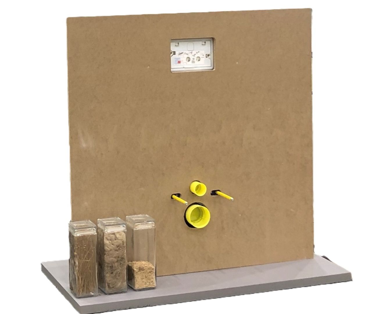 De volledig biobased en circulaire toiletplaat is specifiek ontwikkeld voor hangtoiletten. Ze wordt geleverd met alle noodzakelijke uitsparingen, waaronder die voor de aan- en afvoerleidingen, de bevestiging van de toiletpot en het bedieningspaneel.