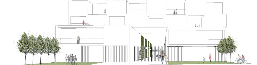 Dit schitterende concept opent perspectieven om anders te denken over hoe we aan verdichting kunnen doen. Verschillende woonvormen garanderen een gemengde wijk en de aandacht voor de buitenruimte verhoogt de levenskwaliteit. Een ondergrondse parking met daarboven woonruimtes en een autovrije leefstraat is een duidelijk voorbeeld van hoeveel je kan doen op een kleine oppervlakte. Bovendien toont het aan dat inbreiding ook ondergronds meerwaarde genereert voor mobiele oplossingen.
