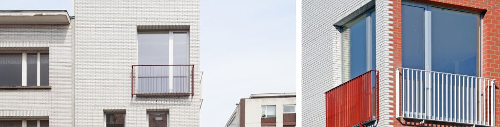 Dit is een zeer goed doordacht concept, met oog voor architecturale detaillering en speelsheid in de soberheid (de twee balustrades in verschillende kleuren, het baksteenpatroon van de bijna onopvallende gevel …). Op een klein perceel werden twee afzonderlijke kwalitatieve woningen gebouwd die onopvallend perfect in het straatbeeld passen. Deze unieke beleving is bovendien budgettair zeer toegankelijk.