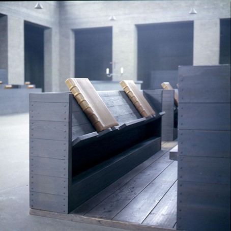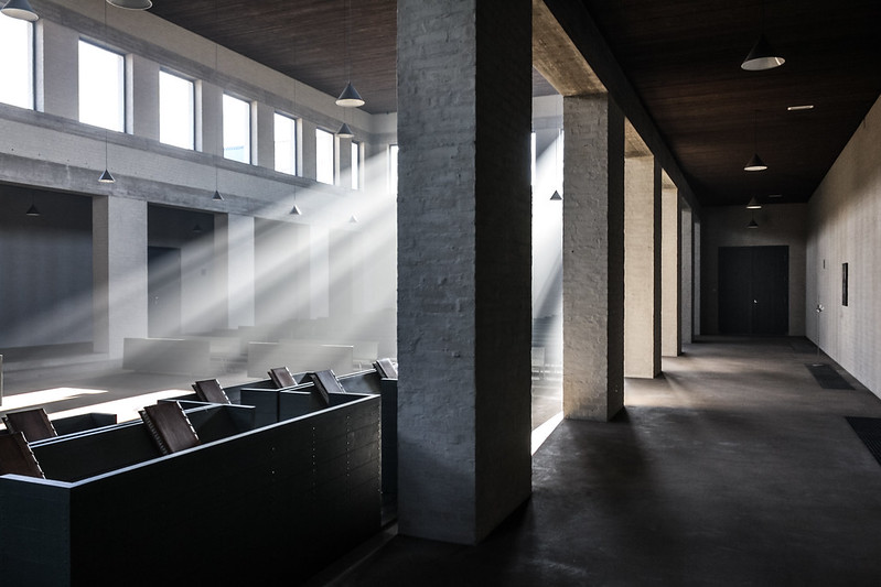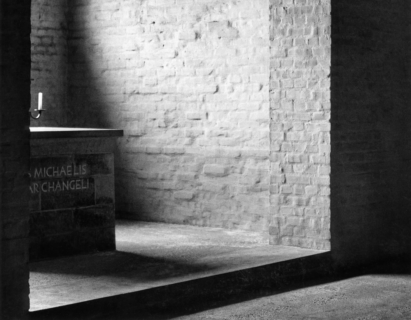 Elders is er is plaats voor onvolmaaktheid. De zichtbare montage/verwerking van de onbehouwen materialen suggereert een tijdelijk karakter; waren zulke ontwerphoudingen religieuze metaforen? Het spel van het licht in de ruimte doorheen het jaar benadrukt het basale karakter van de materialen en de tactiele kwaliteiten van de ruimte. De focus verschuift daardoor van materiaal naar materie.**