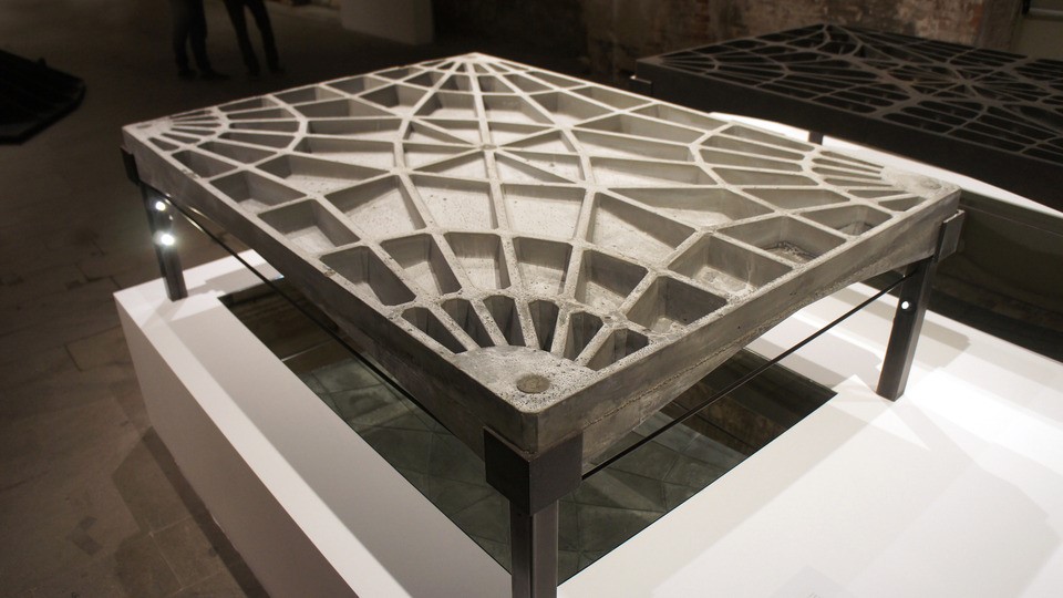 ‘Strength through geometry’ is het leidmotief van de Block Research Group aan de ETH Zürich. Het team van Philippe Block en Tom Van Mele wil structurele oplossingen aanbieden die zo weinig mogelijk nieuw ontgonnen grondstoffen bevatten en zo weinig mogelijk CO2-uitstoot veroorzaken tijdens productie.³ Met de realisatie van hun Armadillo Vault (zie foto hieronder) op de Biënnale van Venetië 2016 maakten ze een fascinerend, ingenieus statement, gebaseerd op de Catalaanse gewelven. Met hun Funicular Floor System maakten ze de vertaalslag van het statement naar een state-of-the-art praktische toepassing: een vloerplaat zonder één enkele wapeningsstaaf, enkel werkend ‘op druk’, 70% lichter dan een conventionele oplossing en geïnspireerd door de middeleeuwse meesterbouwers.