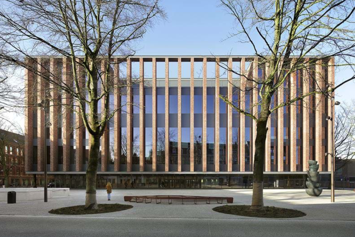 De Veldbrand vormt de perfecte synthese van gevelstenen in de buurt waardoor die het nieuwe beurs- en congresgebouw moeiteloos in zijn omgeving inpast