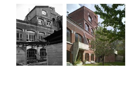 De bestaande gebouwen waren in dusdanig erbarmelijke staat dat men eigenlijk nog nauwelijks van een restauratie kon gewagen : de oorspronkelijke cité met impasses was in de jaren dertig al verbouwd tot een conglomeraat van industriële installaties. Nu kreeg het geheel weliswaar zijn oorspronkelijke functies terug - wonen en werken – maar veel meer dan het bouwen met, op basis van en gebruik makend van de resterende materie, ooit een edelsmederij, was het niet. BOB361 kon als ontwerper heel vrij omgaan met het bestaande, alleen gebruik makend van de nog rechtopstaande « hardware » : muren, beton, structuur. Vorm en functie waren niet langer met elkaar verbonden, de ruïnes vertelden hun eigen verhaal en dat was niet langer het verhaal van de edelsmederij.