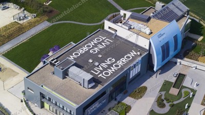 Het antwoord op al deze vragen wil Living Tomorrow in zijn nieuwe campus bieden én effectief tastbaar maken. “Te starten met het gebouw zelf dat we zo CO2- en energievriendelijk mogelijk willen maken”, legt Living Tomorrow-oprichter Frank Beliën uit. “Via innovaties als CO2-neutraal beton en bakstenen, isolatie uit gerecycleerde matrassen, bouwmaterialen die zelf kunnen aangeven wanneer ze vervangen dienen te worden en die volledig kunnen gerecycleerd worden... Maar vooral ook door de vele verschillende functies die ons 15 verdiepingen hoge gebouw zullen vervullen, als het eind volgend jaar open gaat.”