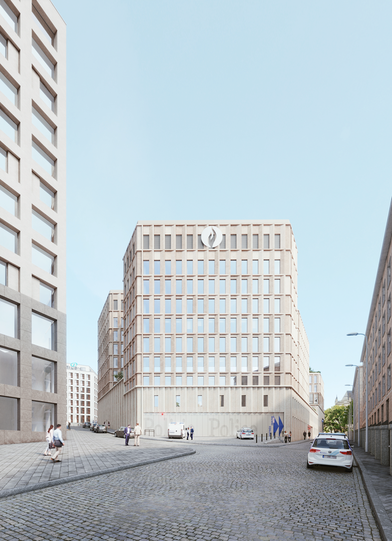 Bouwvergunning voor De Ligne: TM Osar & B-architecten transformeren bankgebouw in Brussel tot duurzaam politiecommissariaat