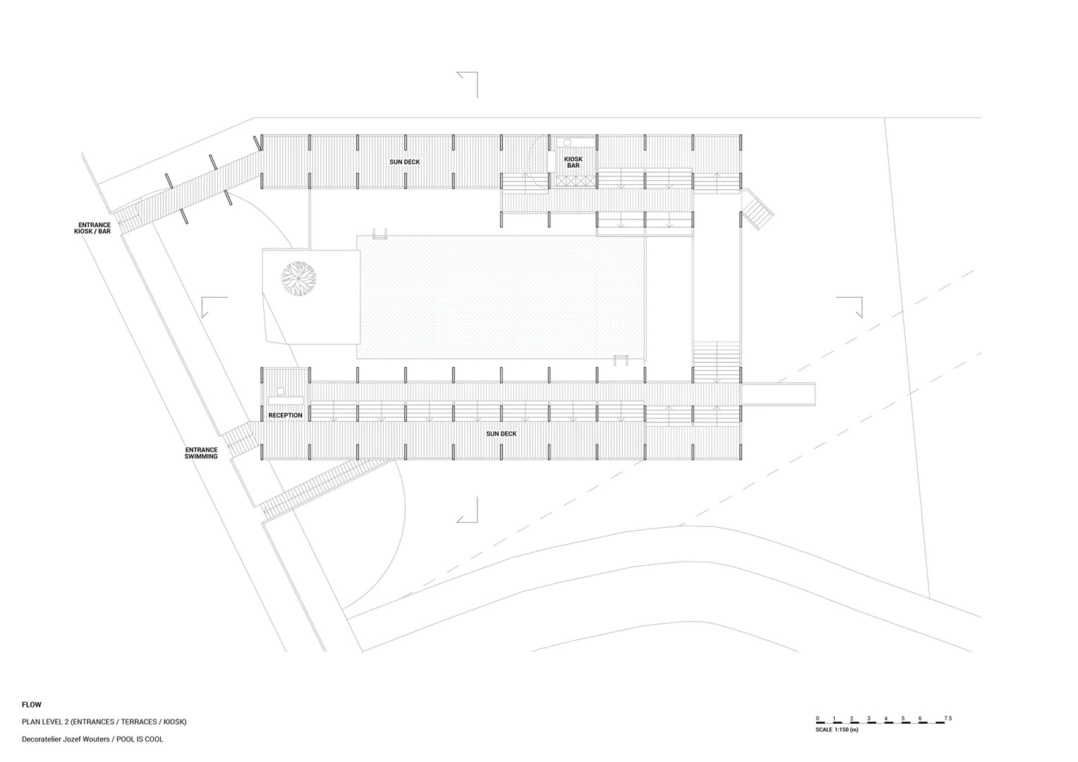 In 2021 lanceerde POOL IS COOL, samen met Decoratelier Jozef Wouters, FLOW: het eerste openbare buitenzwembad in Brussel in meer dan 40 jaar. Met een afmeting van 17 bij 8 meter is het toegankelijk voor zwemmers van alle leeftijden, achtergronden en geslachten. Gelegen op een verlaten industrieterrein in Anderlecht, fungeert het als veilige ontmoetingsplek voor de buurt. Het project bevordert sociale interactie en nodigt stadsbewoners uit om dichter bij de natuur te komen.