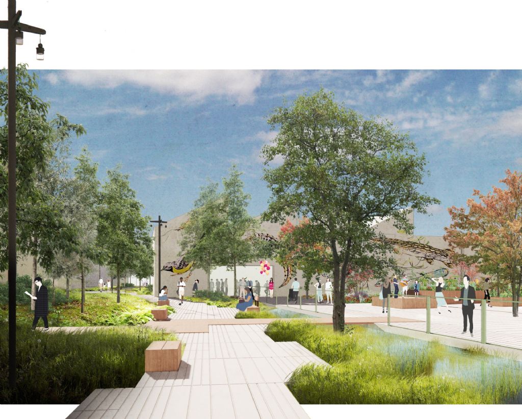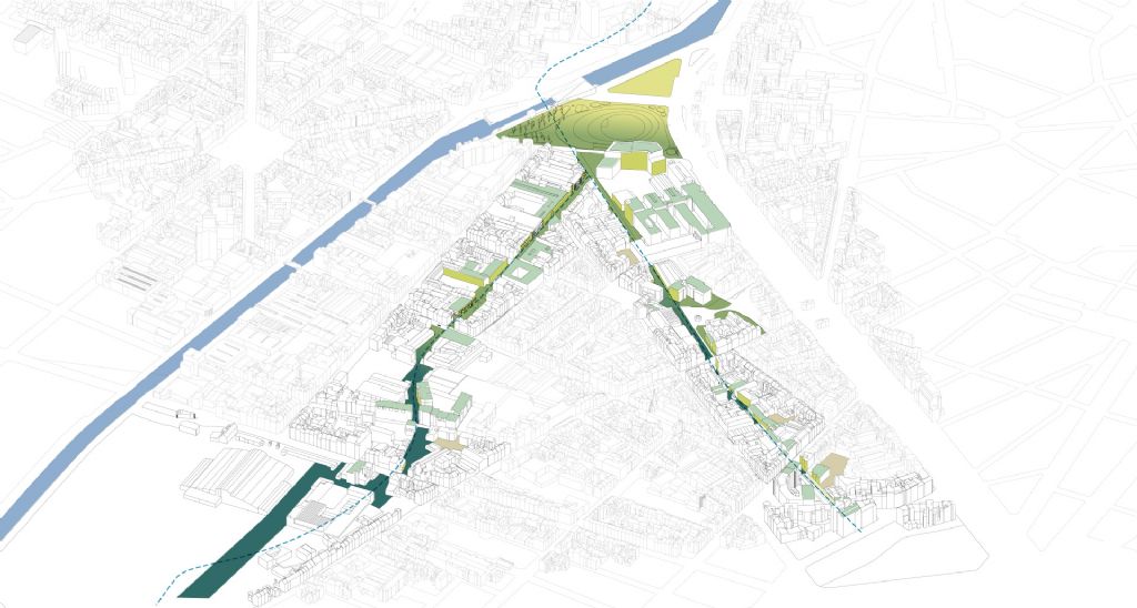Het ontwerpteam kiest voor een biofiele ontwerpbenadering die erop gericht is mensen opnieuw in contact te brengen met de natuur door verschillende niveaus van natuurbeleving in de stedelijke omgeving te stimuleren, met de vroegere bedding van de Kleine Zenne als metafoor voor het nieuwe stadspark. Deze benadering vormt op vele manieren de basis voor het ontwerp, van nature-based solutions zoals fytoremediatie en duurzame drainagesystemen, tot een ontwerptaal die een grotere waardering voor de natuur stimuleert.