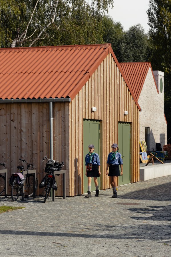 Concreet zijn er twee nieuwe gebouwen opgetrokken voor jeugdbeweging VNJ en Scouts 17e Prins Albert, die zijn ontworpen als bijgebouwen van de historische hoeve. Hoewel de verenigingen hun activiteiten volledig apart kunnen ontplooien, delen ze een gemeenschappelijk speelterrein binnen deze parkkamer. De nieuwe infrastructuur omvat naast de lokalen ook de nodige bergruimte en de volledige buitenaanleg van de zone.