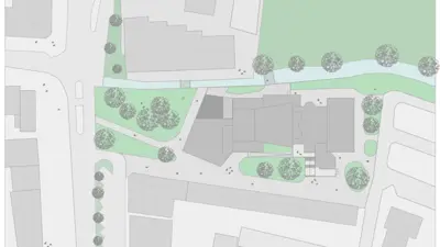 De compactheid van het gebouw maakt ruimte vrij voor een publiek toegankelijke buitenruimte, die ook buiten de openingsuren van de opvang als buurtpark functioneert. De inrichting sluit aan op het natuurlijke verloop van de Witbeek en versterkt de wisselwerking tussen gebouw en omgeving. Hierdoor ontstaat niet enkel een kwalitatieve buitenruimte voor de kinderen, maar ook een landschappelijke meerwaarde voor de bredere wijk. De open ruimte wordt structureel mee opgenomen in het architecturaal en stedenbouwkundig concept.
