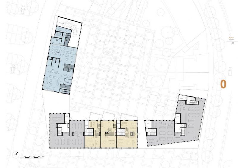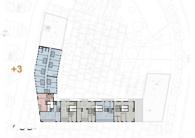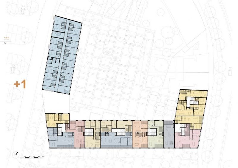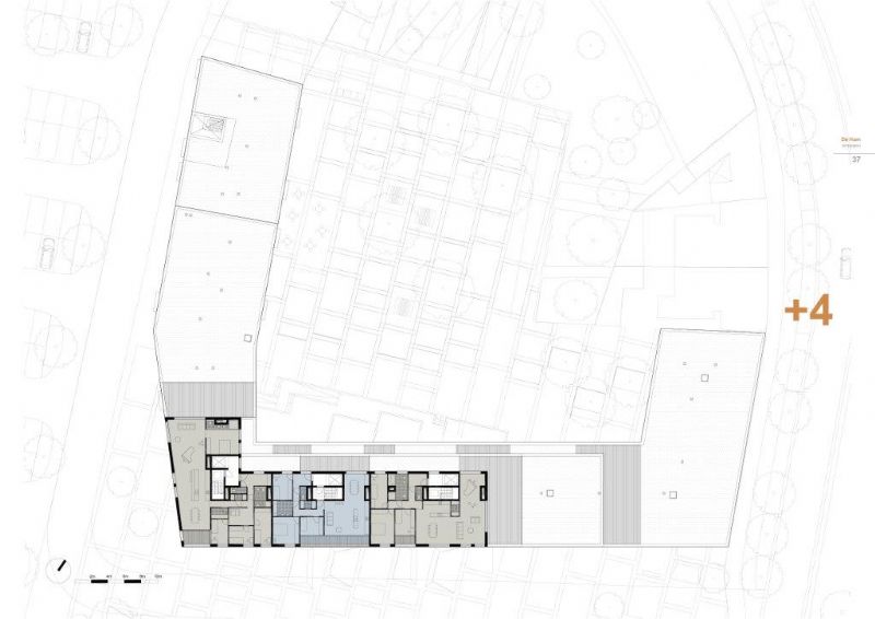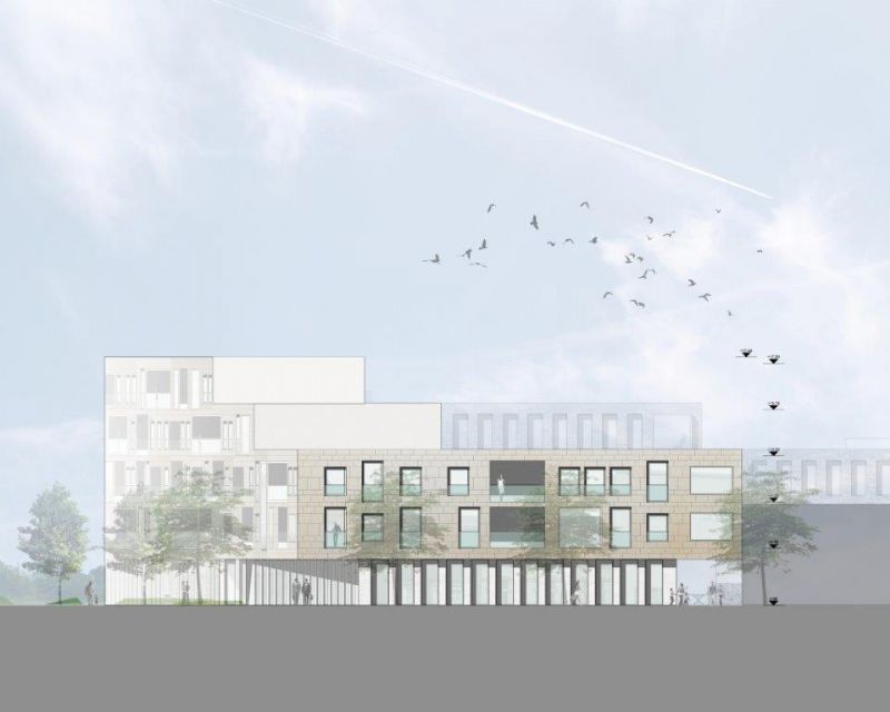 In de materialisatie, zowel voor de gevels als voor de landschapsaanleg, wordt gerefereerd naar materialen die langs de Schelde of in de straten van Oudenaarde terug te vinden zijn. Linken en doorsteken op de site zorgen voor een maximale binding met het stedelijk weefsel. Rond het nieuwbouwproject wordt een uitnodigende openbare ruimte ontwikkeld, die gekoppeld wordt aan de Schelde.