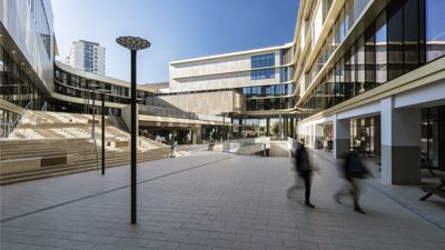 Opvallend is de wijze waarop de gebouwen als een doorwaadbaar geheel zijn opgevat omheen een centraal stedelijk binnenplein, het hart van de Campus. Dit zorgt niet alleen voor contact en daglicht. Deze school wil zich ook bewust profileren als een onderdeel van de stad.