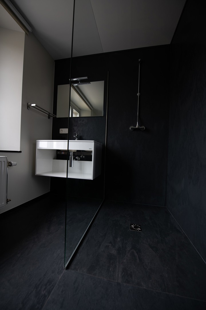Wedi paste zijn waterdichte systeem toe bij de renovatie van de badkamers in een oude abdij. Dat het systeem toeliet de oude houten gebinten en vloeren te behouden, is meteen een belangrijk pluspunt op het vlak van circulair bouwen. Rechtstreeks behoud van materialen spaart immers zowel afval als het gebruik van nieuwe grondstoffen uit, alsook het daaraan verbonden transport. In deze renovatiecontext was het waterdicht uitvoeren van de badkamers belangrijk, maar tegelijk ook een uitdaging. Het systeem van wedi combineert die waterdichting met een ontkoppeling en een isolatielaag. Die integratie maakt het een eenvoudig en materiaalbesparend systeem. De grote bouwplaten in combinatie met de TOP-afwerking sparen bovendien voegen uit en kunnen zo sneller geplaatst worden. Overschotten werden versneden tot plinten, waardoor bouwafval tot een minimum kon worden beperkt. De gebruikte materialen maken ten slotte gebruik van gerecycleerde grondstoffen.
