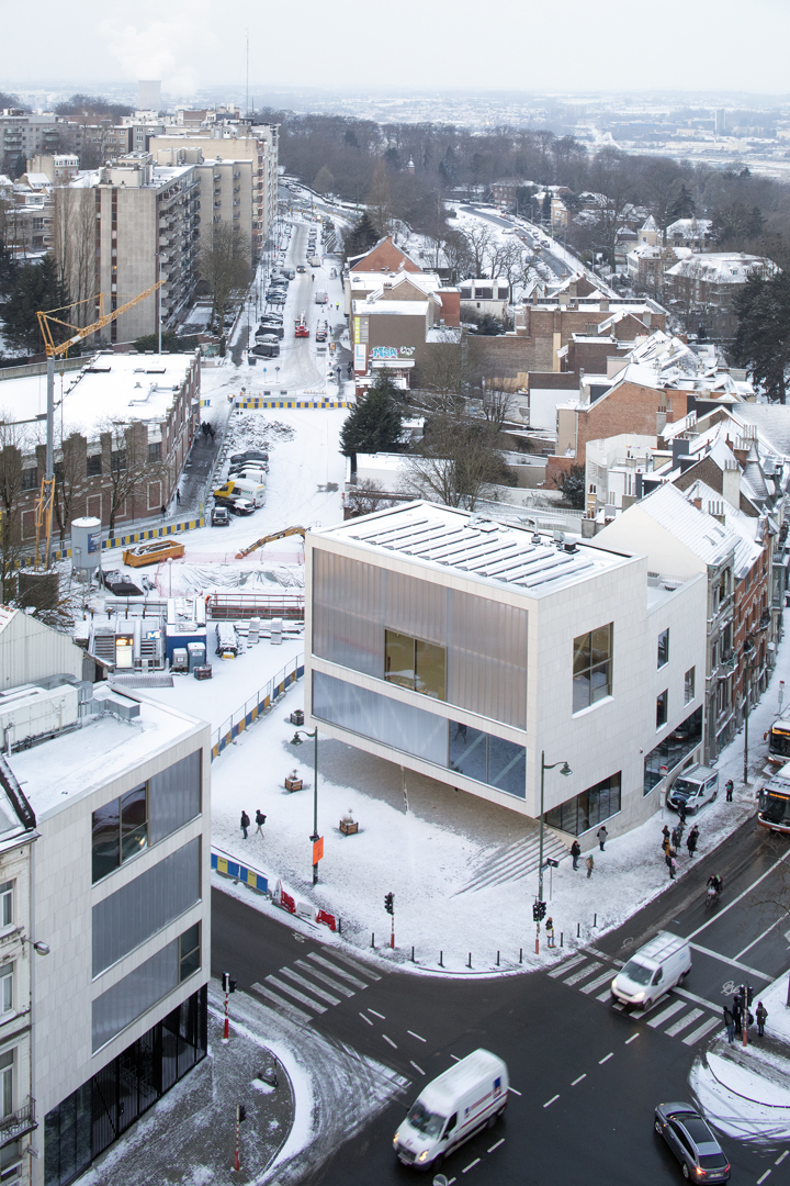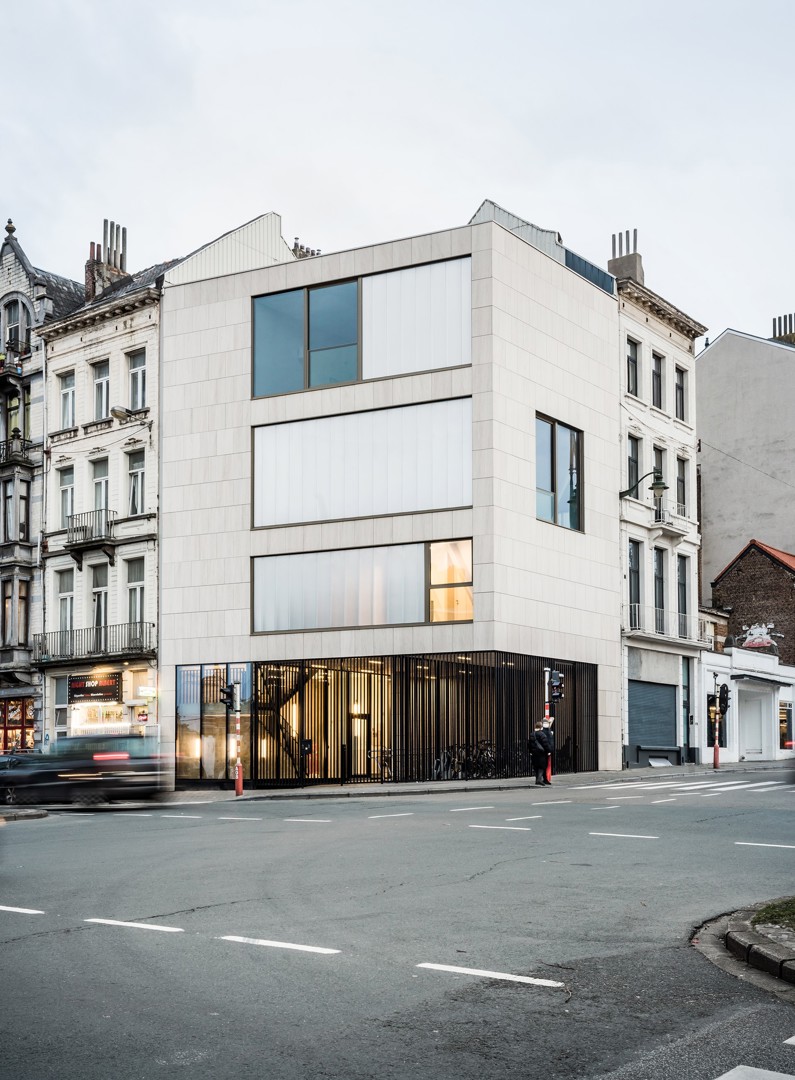 Technisch gezien is de projectsite zodanig specifiek dat heel veel van de uitvoeringsoplossingen en bouwtechnieken op maat van dit project uitgewerkt moesten worden. Toch zijn wij erin geslaagd om een aantal bouwelementen volgens de principes van circulair bouwen uit te voeren. Zo zijn alle gevels uit natuursteen volledig demonteerbaar dankzij het gebruik van gevelmodules met gestandaardiseerd formaat. De gevelpanelen zouden in de toekomst in andere projecten kunnen worden toegepast.