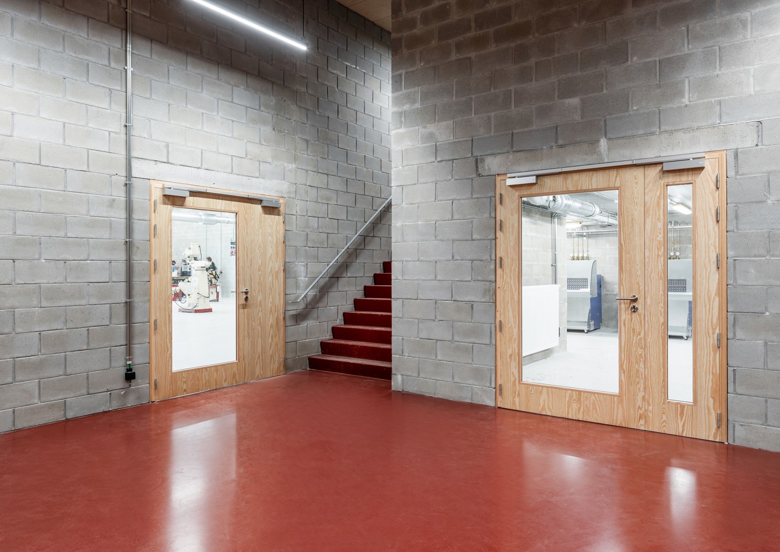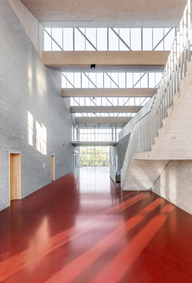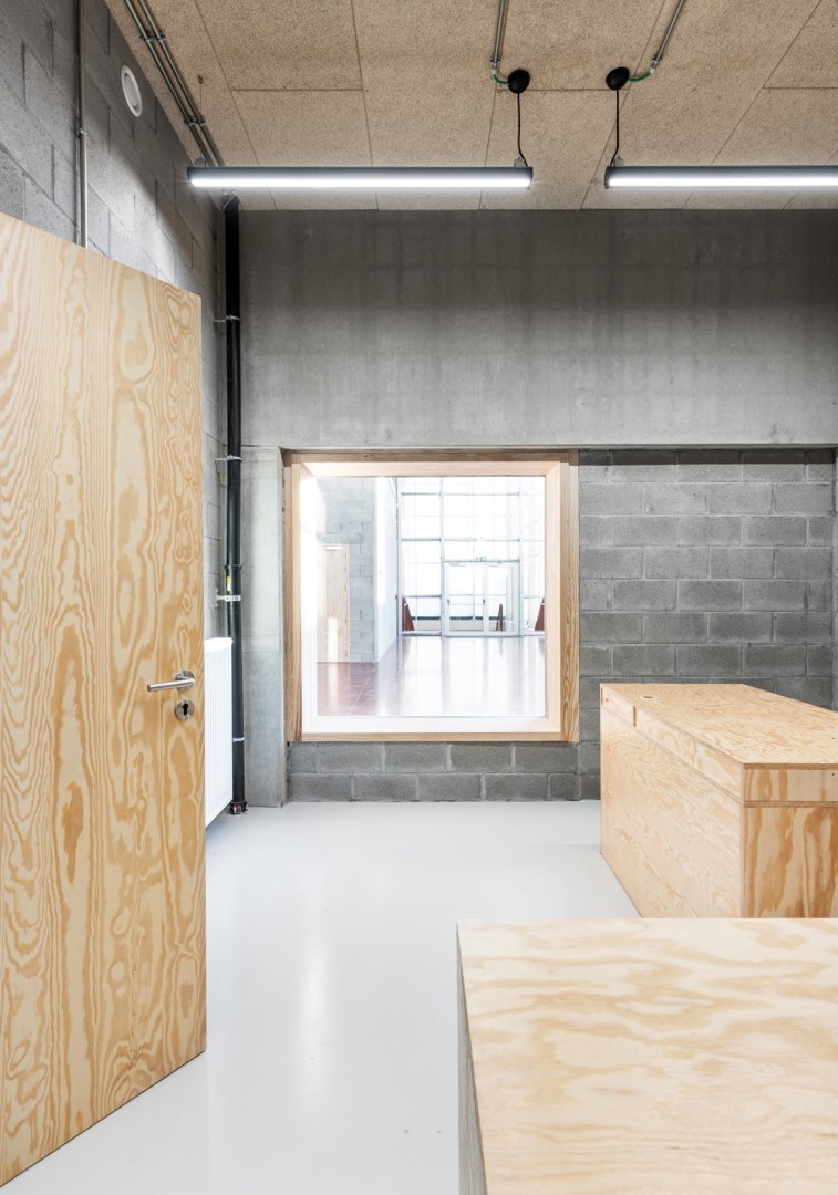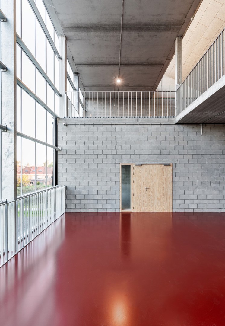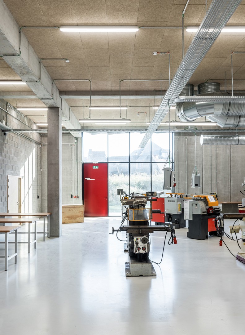 Op het vlak van architectuur werd ook gekeken naar oplossingen die robuust en eenvoudig in uitvoering zijn, zodat doorheen de tijd het onderhoud of eventuele herstellingswerken door de school zelf uitgevoerd kunnen worden. Aangezien het om een technische en beroepsschool gaat, met industriële afdelingen zoals metaal- en houtbewerking, maar ook met een afdeling elektriciteit, kunnen de meeste gebouw- en inrichtingselementen volgens ons door de leerkrachten en leerlingen hersteld worden.