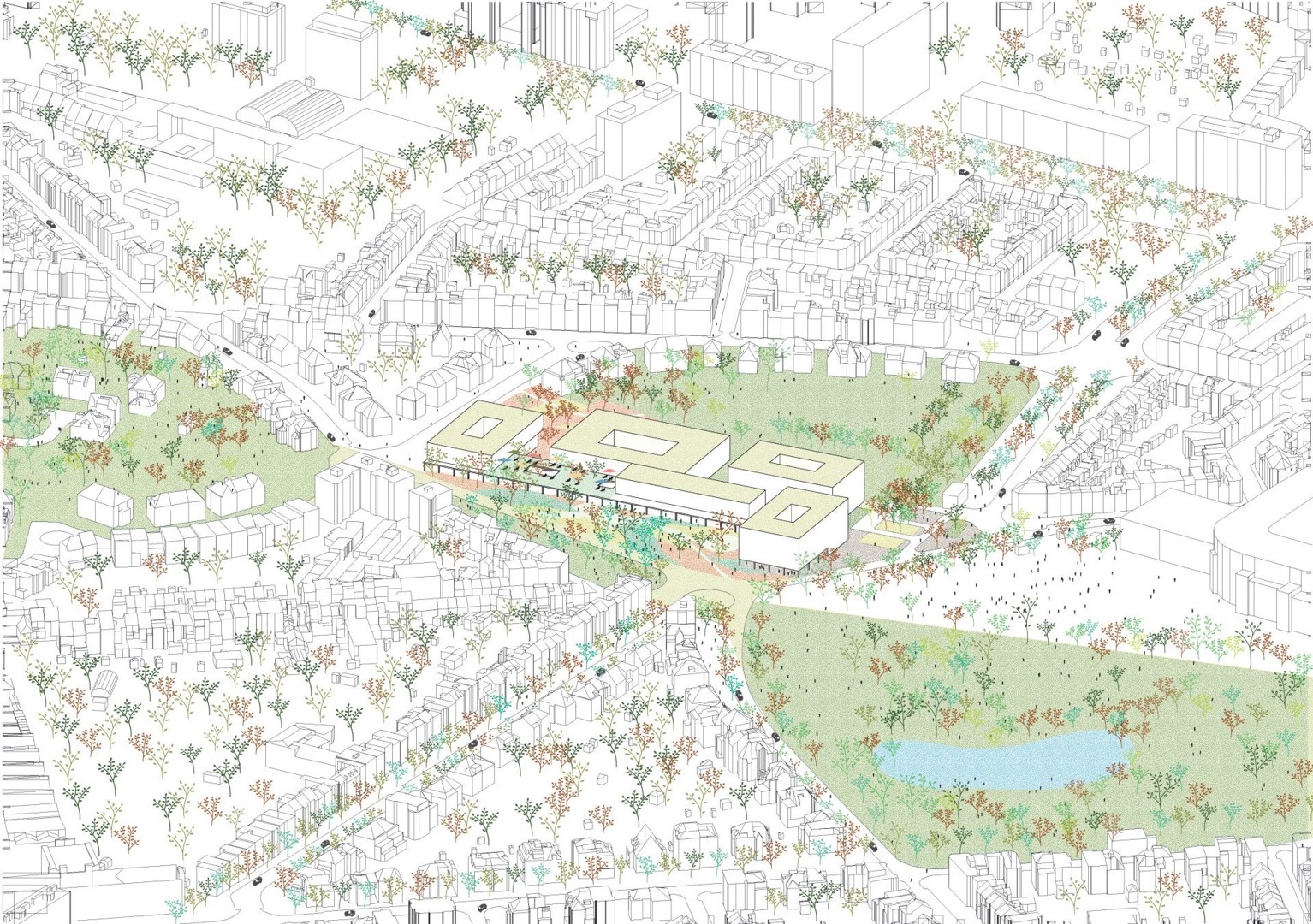 Zorgprojecten, zoals ziekenhuizen, zijn vaak strategisch gelegen projecten die gezien hun schaal een grote hoeveelheid aan materiaal en infrastructuur vergen. Zowel de programmering als de benodigde ruimte zijn zeer gevoelig voor veranderingen op korte termijn. Voor het Joseph Bracopsziekenhuis heeft archipelago daarom onderzoek gedaan naar een mogelijk toekomstig gebruik van het project buiten de zorgsector. Dat resulteerde in een omkeerbare infrastructuur voor zowel zorg als (potentieel voor) woonzorg, wonen en kantoren. Het project creëert ook openbare buitenruimtes die gedeeld worden met de buurt, zoals een nieuw plein en een publieke tuin.