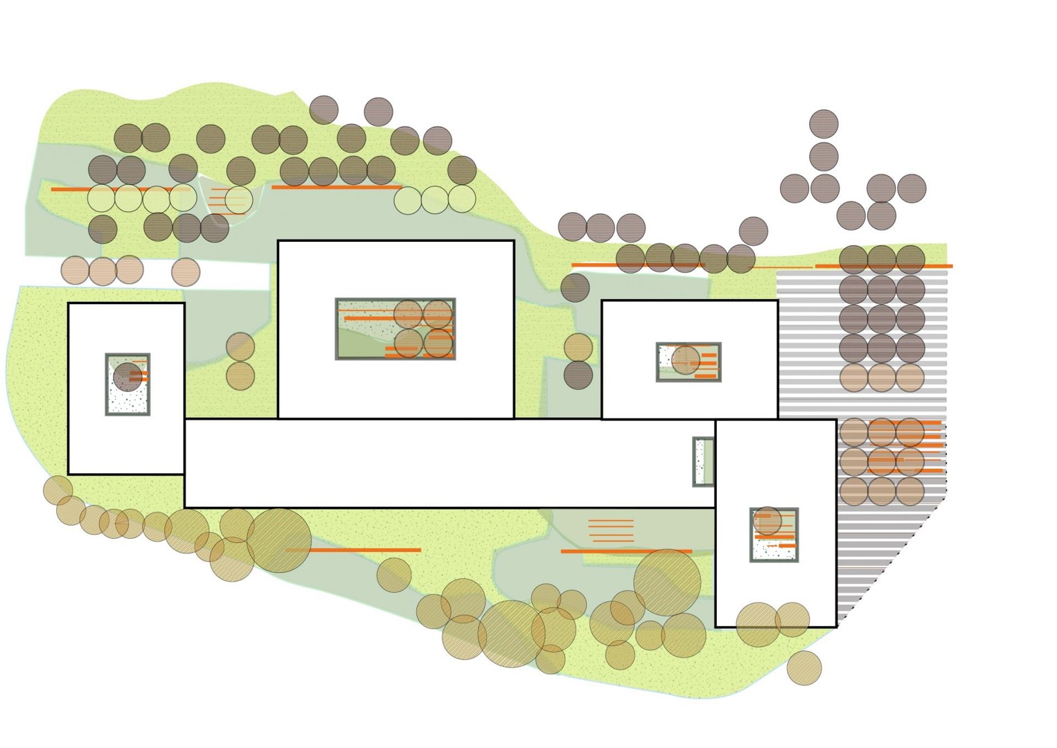 Ook in de omgevingsaanleg is de veranderingsgerichtheid doorgetrokken, aangezien gedurende de uitrol van het masterplan een aantal locaties doorheen de tijd van functie zullen moeten veranderen. Ook na de realisatie van het hele project zal de omgevingsinrichting nog kunnen wijzigen in functie van veranderende noden of inzichten, aangezien de omgevingsaanleg uitgevoerd wordt in modulaire, verplaatsbare elementen.