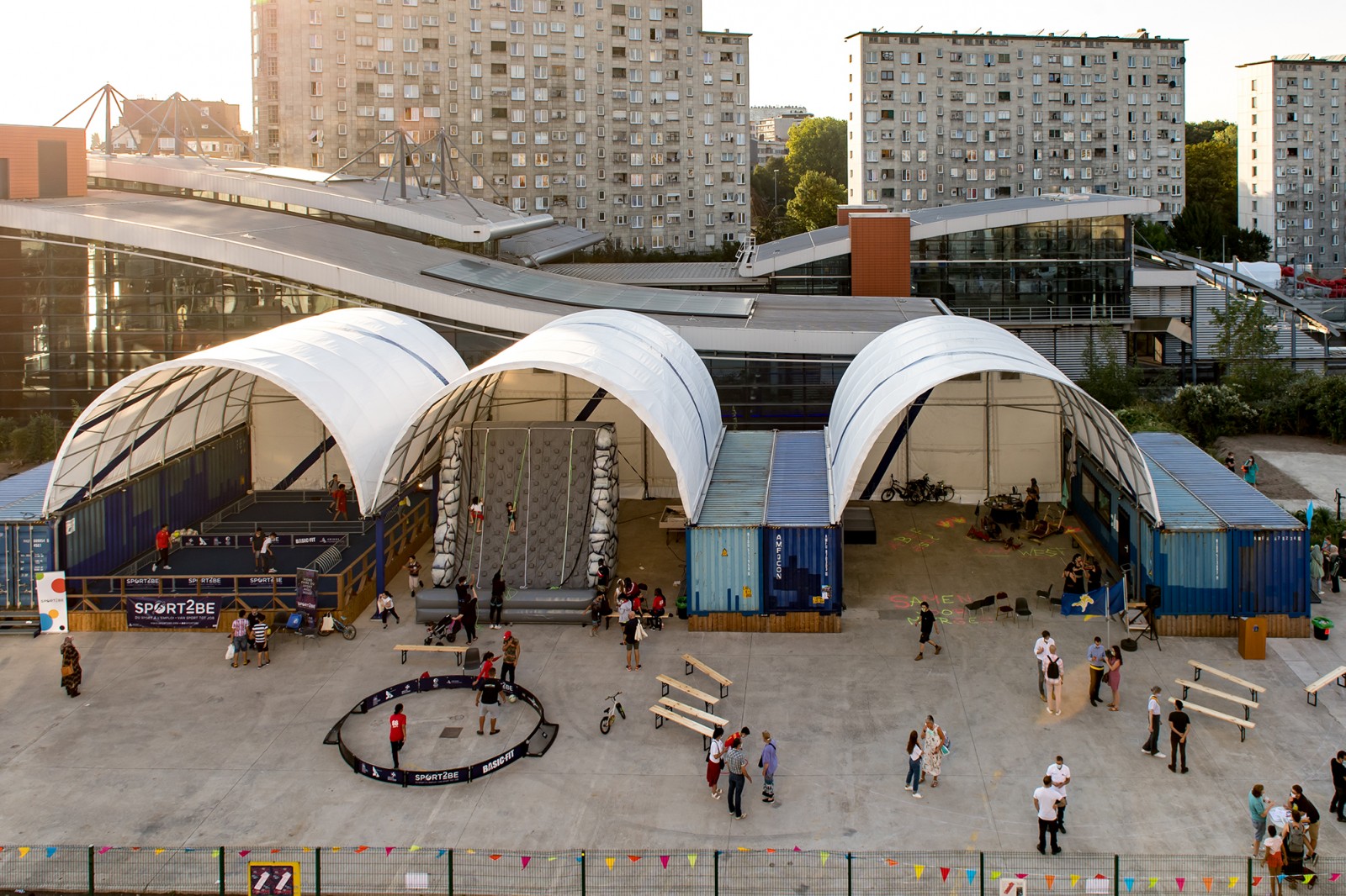Op een braakliggend perceel naast het treinstation Brussel-West in Sint-Jans-Molenbeek wordt het komende decennium een nieuwe gemengde stadswijk ontwikkeld, met woningen, kantoren, productiefaciliteiten, ruimte voor openbare diensten en een park. Het Brussels Hoofdstedelijk Gewest en Molenbeek wilden echter nu al iets doen met de site en gingen onder de naam Molenwest Square een samenwerking aan met lokale verenigen om er een aanbod van activiteiten voor kinderen en tieners te creëren. Het Brusselse bureau 1010 architecture urbanism ontwierp daarvoor een demonteerbare structuur die de verschillende activiteiten onderdak biedt. Daarvoor werd gedeeltelijk gebruikgemaakt van recuperatiematerialen, die onder meer ter plekke werden gevonden.