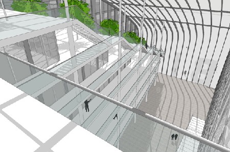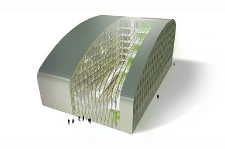 Het voorontwerp kenmerkt zich door een compact volume onder een gebold en goeddeels transparant dak. Een centraal atrium is ontworpen als voortzetting van de openbare ruimte, de onderste twee bouwlagen zijn gemakkelijk toegankelijk voor het grote publiek en de oostelijke kantoorvleugel is voorzien van terugspringende terrasvloeren met geïntegreerd groen en een royaal uitzicht over de directe omgeving.