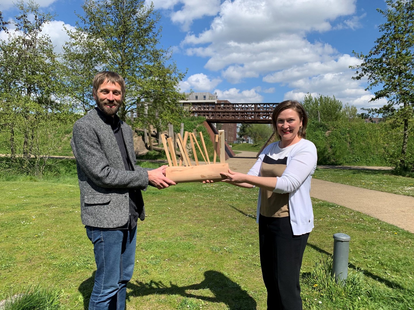 “Beslissen aan wie we de Circubuild-award zouden doorgeven was niet simpel voor ons omdat we de inspanningen van álle ondertekenaars van de Green Deal Circulair Bouwen naar waarde schatten – dat wil ik graag benadrukken. Daarom hebben we ons in onze keuze laten leiden door het pijnpunt in de transitie naar circulair bouwen dat we als laureaat moeten benoemen bij het doorgeven van de award. En dat is het feit dat circulair bouwen vandaag nog altijd gezien wordt als duurder dan traditioneel bouwen – dat komt in onze gesprekken met stakeholders vaak naar voren. Het is pas wanneer bouwheren en architecten zien dat er opties zijn waarin circulair bouwen goedkoper is, dat ze het écht zullen gaan doen. Het bijzondere aan wooncoop is dat het echt is gaan experimenteren en zoeken naar innovatie binnen dat thema. De woonbenadering van wooncoop is betaalbaar én circulair. Karel en zijn team hebben daarom volgens ons echt pionierswerk verricht, en dat is toch wat de Circubuild-award precies beloont”, besloot Labeeuw.