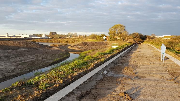 In Veurne gaat aannemer De Brabandere de betonnen afwateringsgoot van een nieuw fietspad in het natuurgebied Suikerwater aanleggen in circulair beton. Ook slimme ‘volgverlichting’ maakt de nieuwe fietsverbinding circulair.