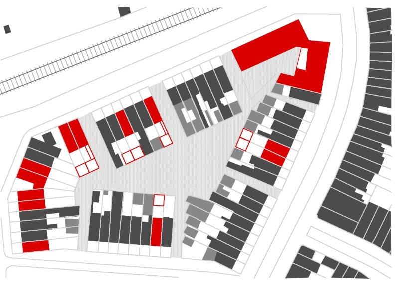 Op schaal van het perceel herstellen de architecten de relatie met de groene omgeving en introduceren ze een mix van woonvormen die tegemoet komt aan een brede waaier van gebruikersnoden en -profielen. Opmerkelijk hierbij zijn de units die ingepland worden aan de achterzijde van de woning en diverse functies kunnen vervullen; kangoeroewoning, atelier, kamer voor de pluskinderen …