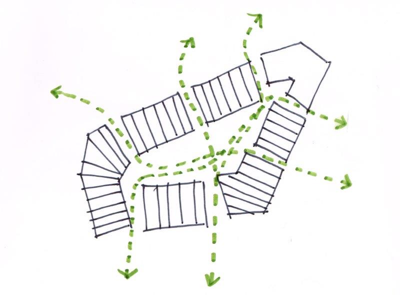 De architecten hebben ervoor geopteerd om van de achterzijde een tweede voorzijde te maken. Het binnengebied wordt hierdoor opgeladen en tegelijkertijd worden de kwaliteit, de uitbreidbaarheid, de flexibiliteit en de waarde van de woningen aanzienlijk vergroot.