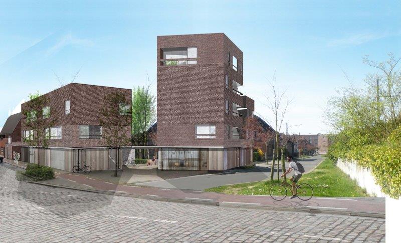 De zeven percelen op de hoek van de Graaf Boudewijn IX-laan en de Tuighuisstraat worden gebundeld in drie volumes op schaal van de wijk en haar omgeving. De hoek verdicht de wijk met andere woontypologieën – 16 appartementen, studio’s en duplexen. Met een collectieve functie op het gelijkvloers wordt een duurzame buurtontwikkeling en een versterking van de sociale cohesie beoogd.