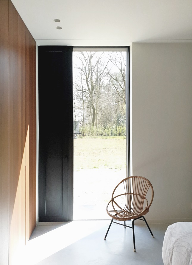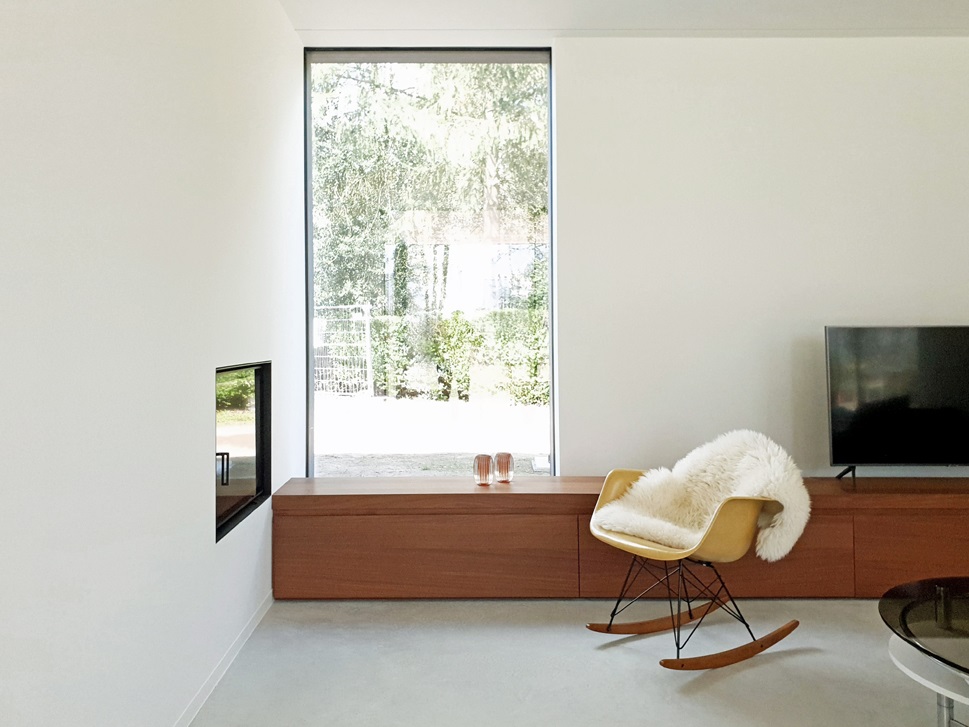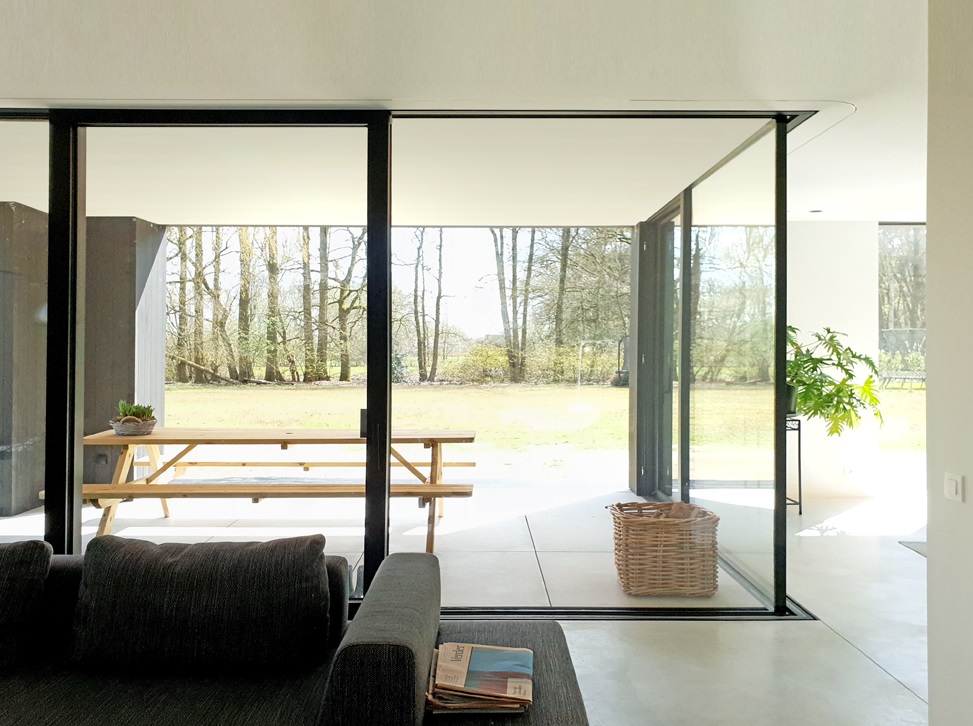 Omdat de bestaande vakantiewoning relatief donker was, werden ook de raamopeningen gewijzigd. Zo dringt niet alleen de zon, maar ook het landschap de woning maximaal binnen. Het perceel wordt in zijn volle 360° beleefd vanuit de verschillende ruimtes van de woning.