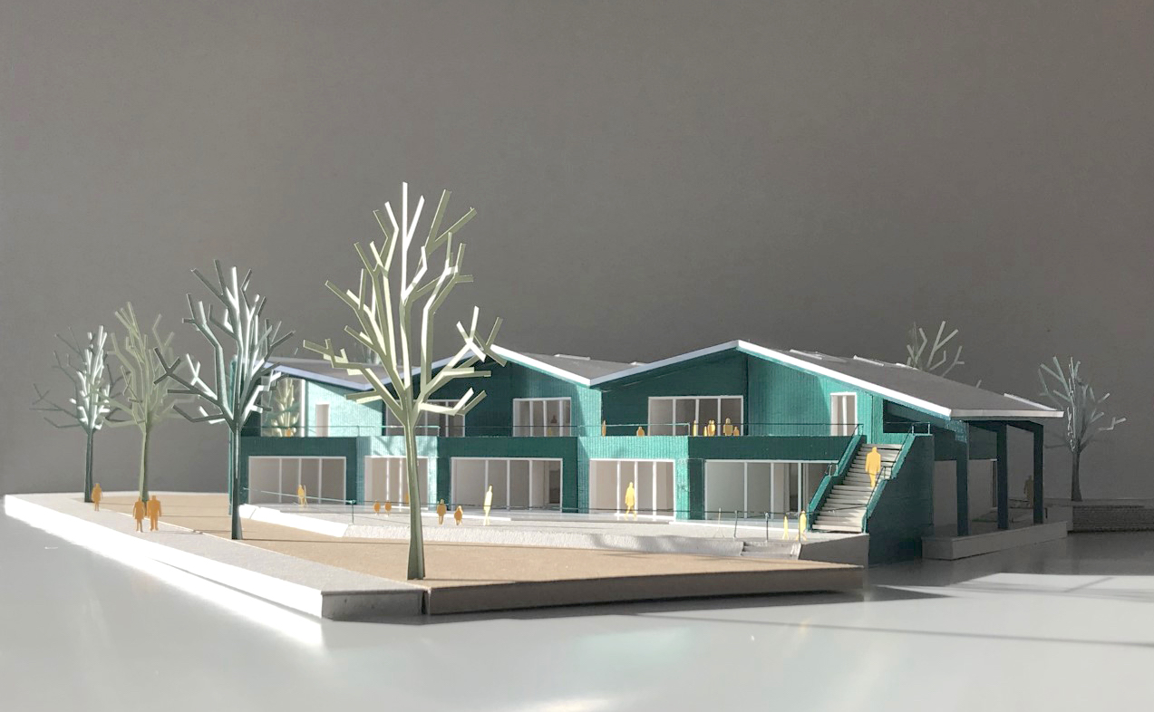 Voor de gevels werd gekozen voor een groen gebeitste houten beplanking en duurzaam houten schrijnwerk.