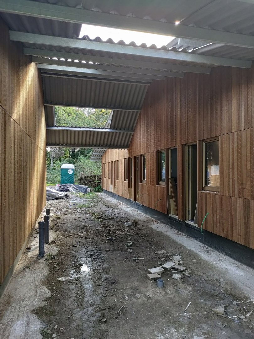 Enkele foto's genomen op de werf van het Kitchen Dining Building.