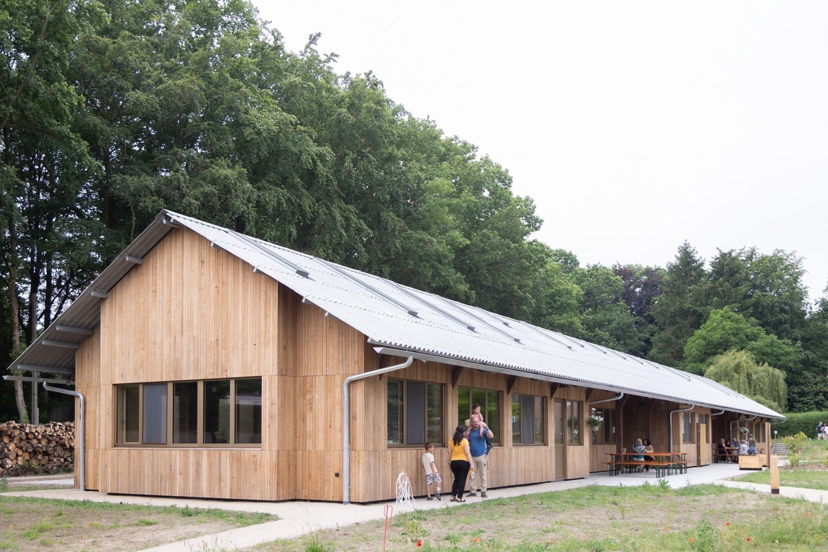 In de bossen van de Limburgse gemeente Dilsen-Stokkem werd Dhamma Pajjota, een meditatiecentrum van Vipassana Meditation, onlangs uitgebreid met een gebouw waar kan gekookt en gegeten worden en een gebouw met slaapkamers voorbehouden aan mannelijke bezoekers van het centrum. DMOA Architecten uit Leuven ontwierp beide uitbreidingen en deed dat op circulaire wijze: de gebouwen kunnen weer volledig uit elkaar worden gehaald en werden met zoveel mogelijk ecologische materialen gerealiseerd.