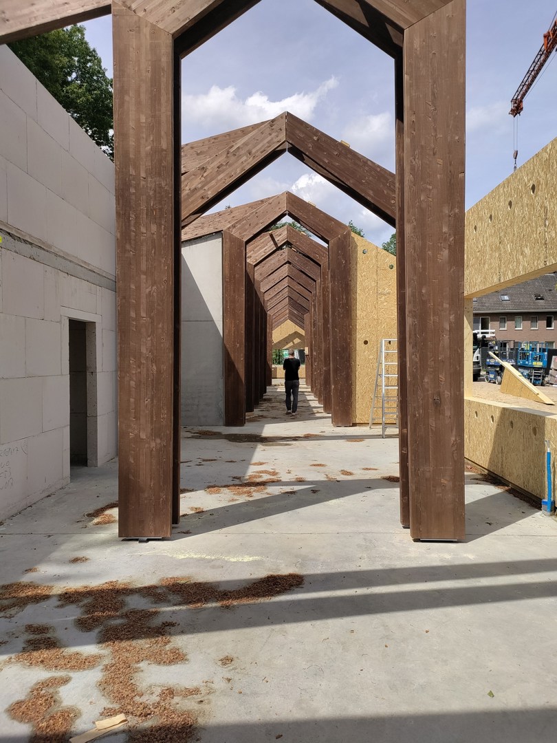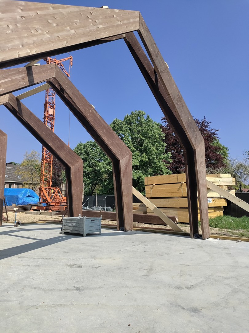 Beide gebouwen bestaan uit een houtskelet dat werd opgetrokken op een funderingsplaat met geothermie in gepolierd beton op isolatie. De funderingen zijn build to last; er kan later eenvoudig een nieuwe constructie op worden gebouwd. De twee houtstructuren bestaan uit demonteerbare spanten in gelamelleerd hout en houten prefab caissons van DUPAC gevuld met cellulose-isolatie – die desgewenst afgeschraapt en gerecycleerd worden.