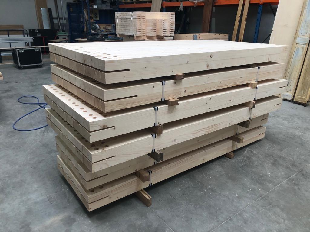 Nauw verbonden met losmaakbaarheid is prefabricatie: de houten elementen worden grotendeels in de fabriek op maat gemaakt, met hoge precisie en minimale toleranties, en op de werf volgt dan een droge montage met herbruikbare verbindingen. Die manier van werken verkort de bouwtijd, vermindert afval en garandeert dus dat elk onderdeel in principe ook weer gedemonteerd en hergebruikt kan worden.