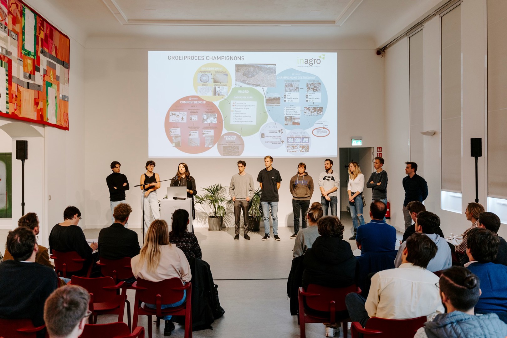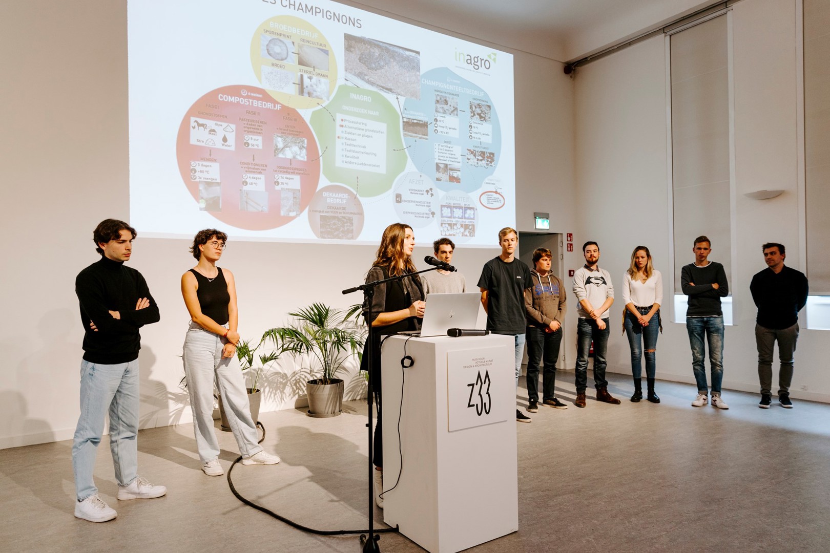 Zelf nam ik dan weer deel aan de tweede bootcamp van het wanderful.stream-project, een Interreg-project met Limburgse partners UCLL, POM en Z33 en enkele Waalse en buitenlandse partners. Ik mocht als lead designer meewerken aan een case rond champost. Dat is simpel gezegd mest, waarvan we in België jaarlijks 80.000 ton produceren die gratis wordt weggegeven. De vraag was dus: kan je van stront opnieuw goud maken? Het lijkt erop van wel, want mijn team studenten won het bootcamp! De jury loofde onze oplossing, een driedubbele circulaire loop in de biosfeer. Ik geloof dat ik biodesign stilaan aan mijn cv kan toevoegen.